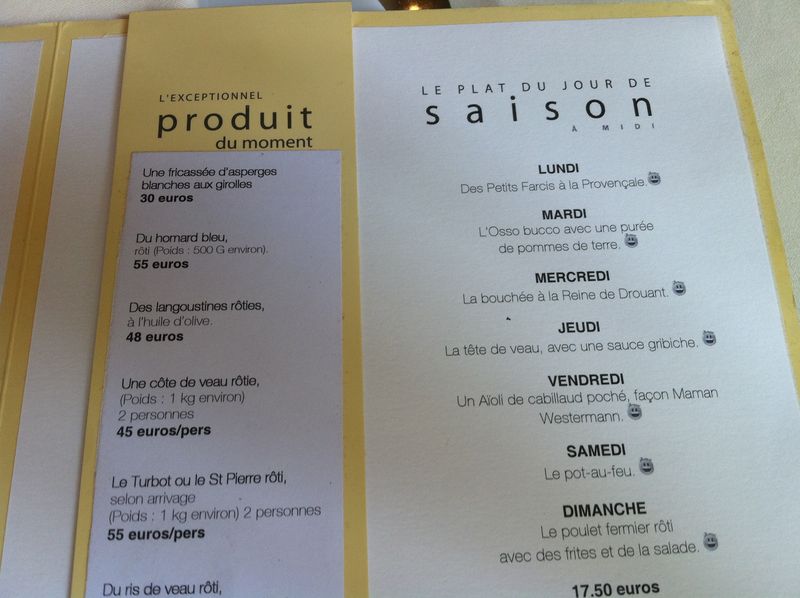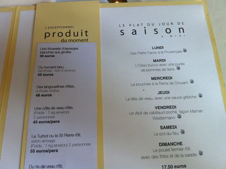 la proposition en vin au verre un peu décevante : chablis ou sancerre pour accompagner ma dorade … j’attendais quelque chose d’un peu plus inventif !