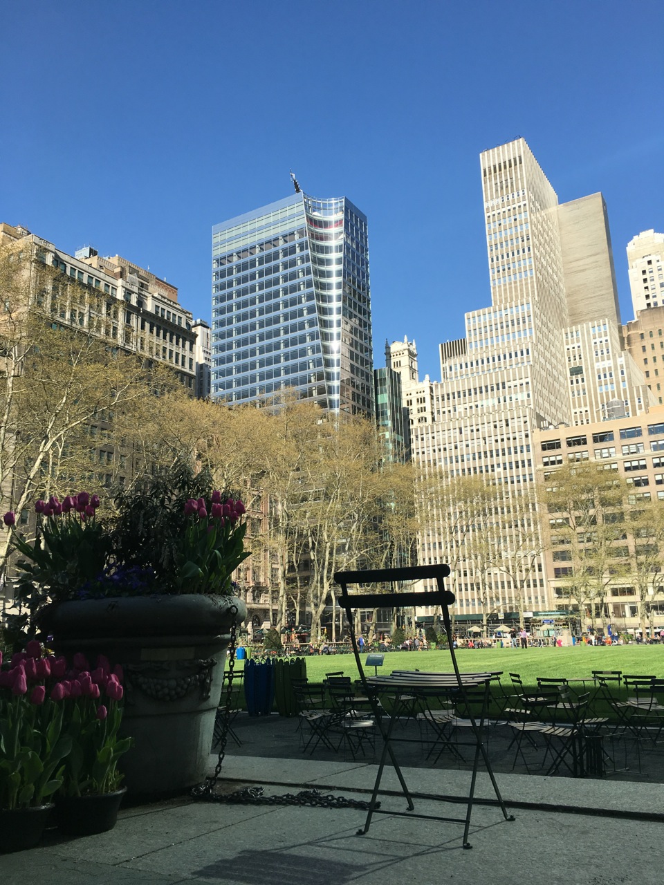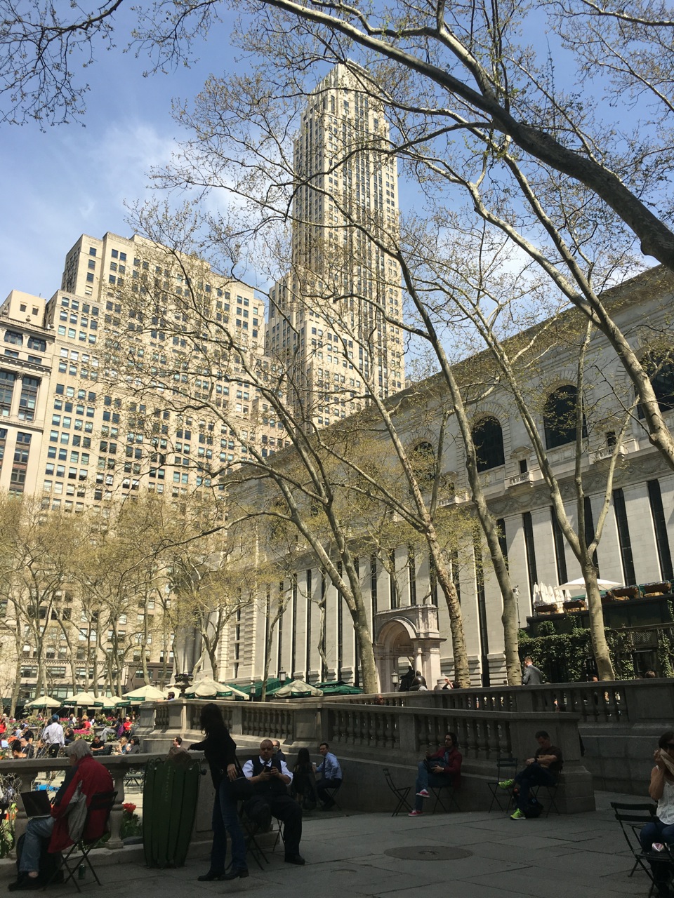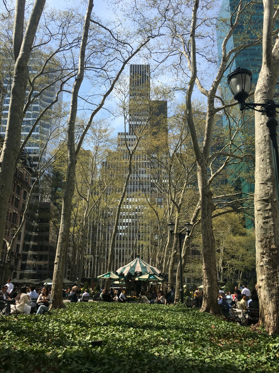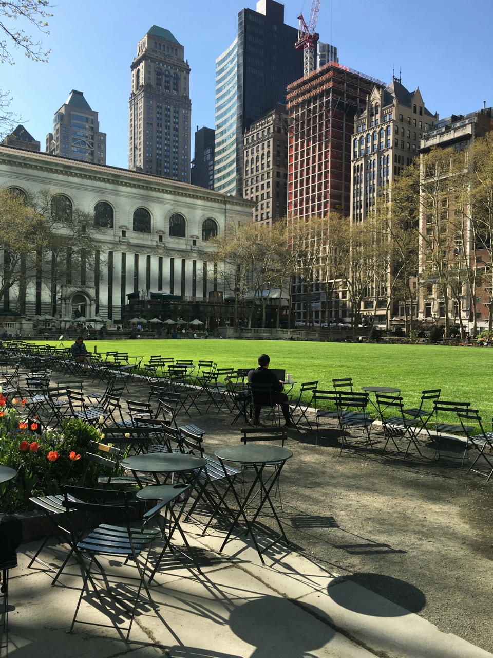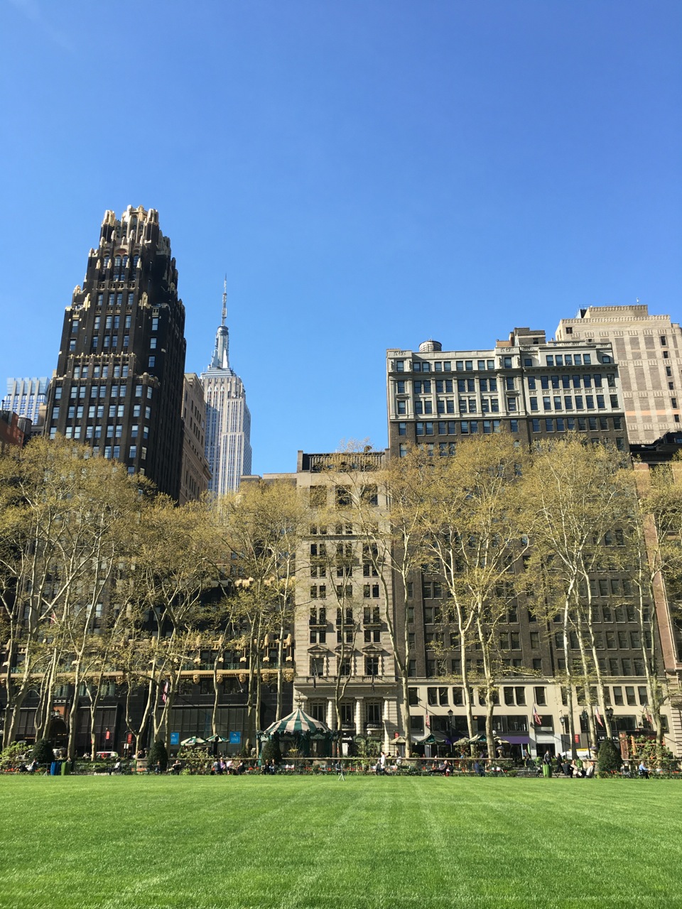 Bryant Park est bordé par la New York public library, et c’est un endroit parfait pour se poser, pour 5 minutes, ou pour quelques heures.
