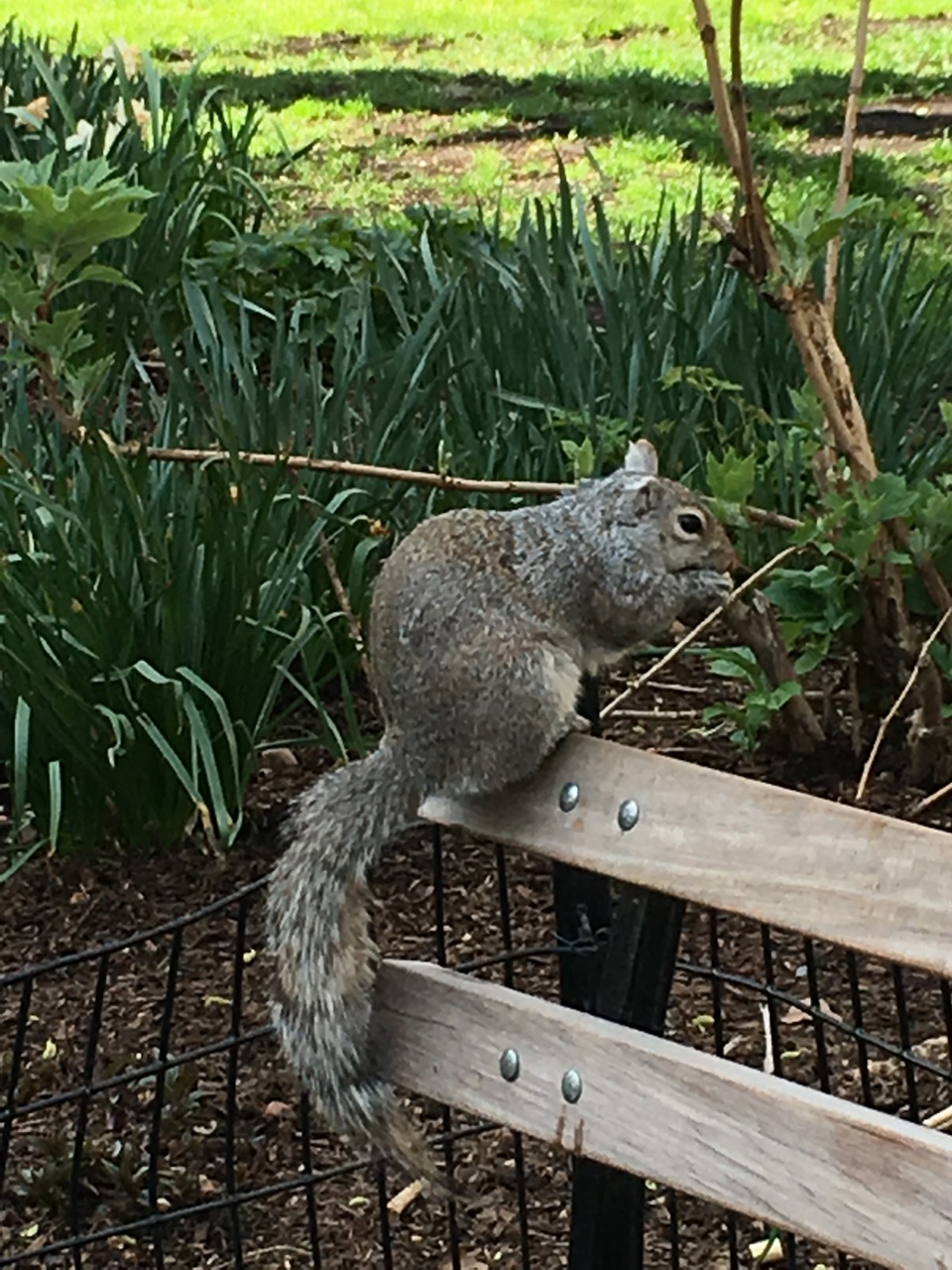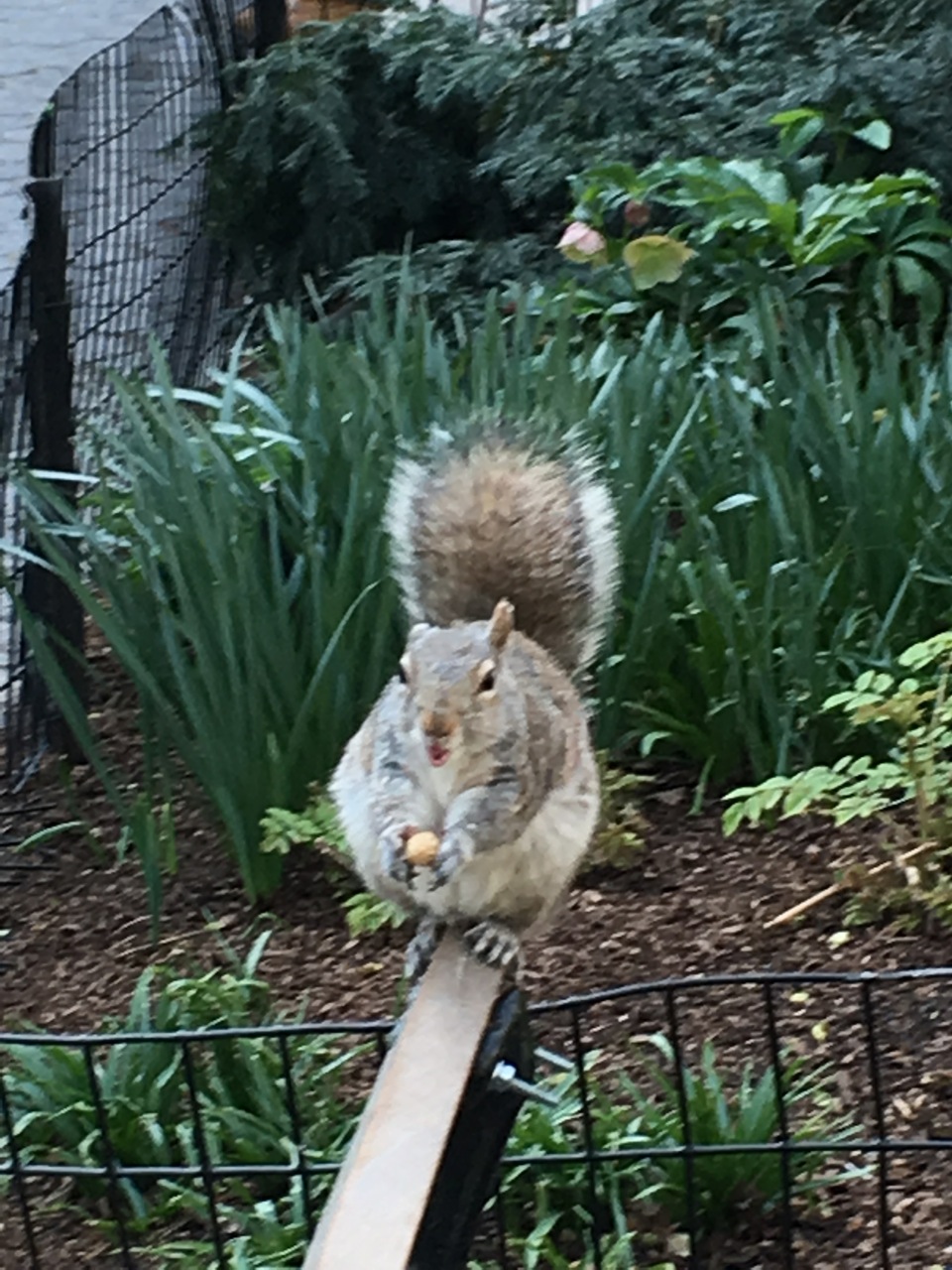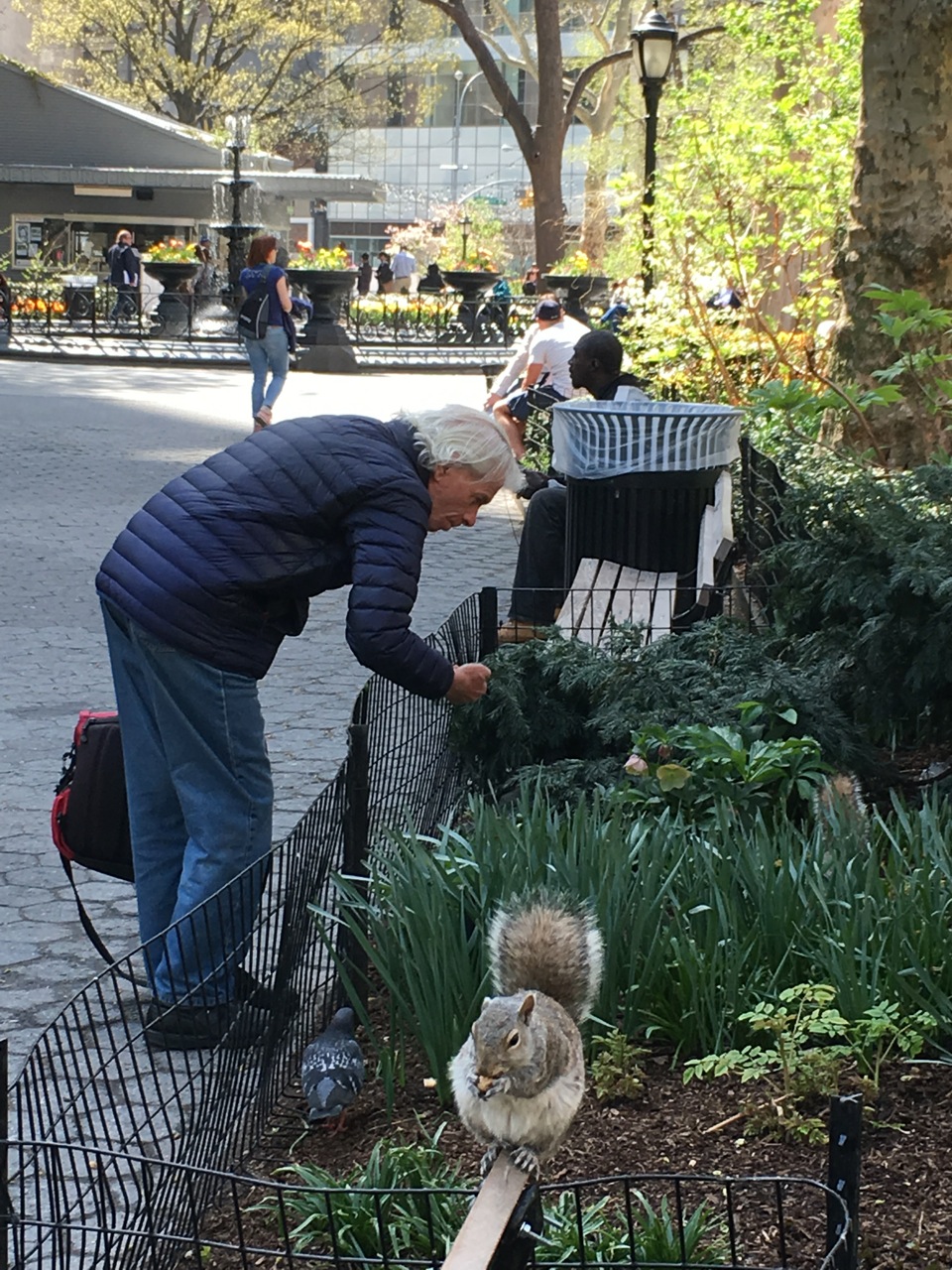 Et un habitué nourrit les écureuils qui ne boudent pas leur plaisir.