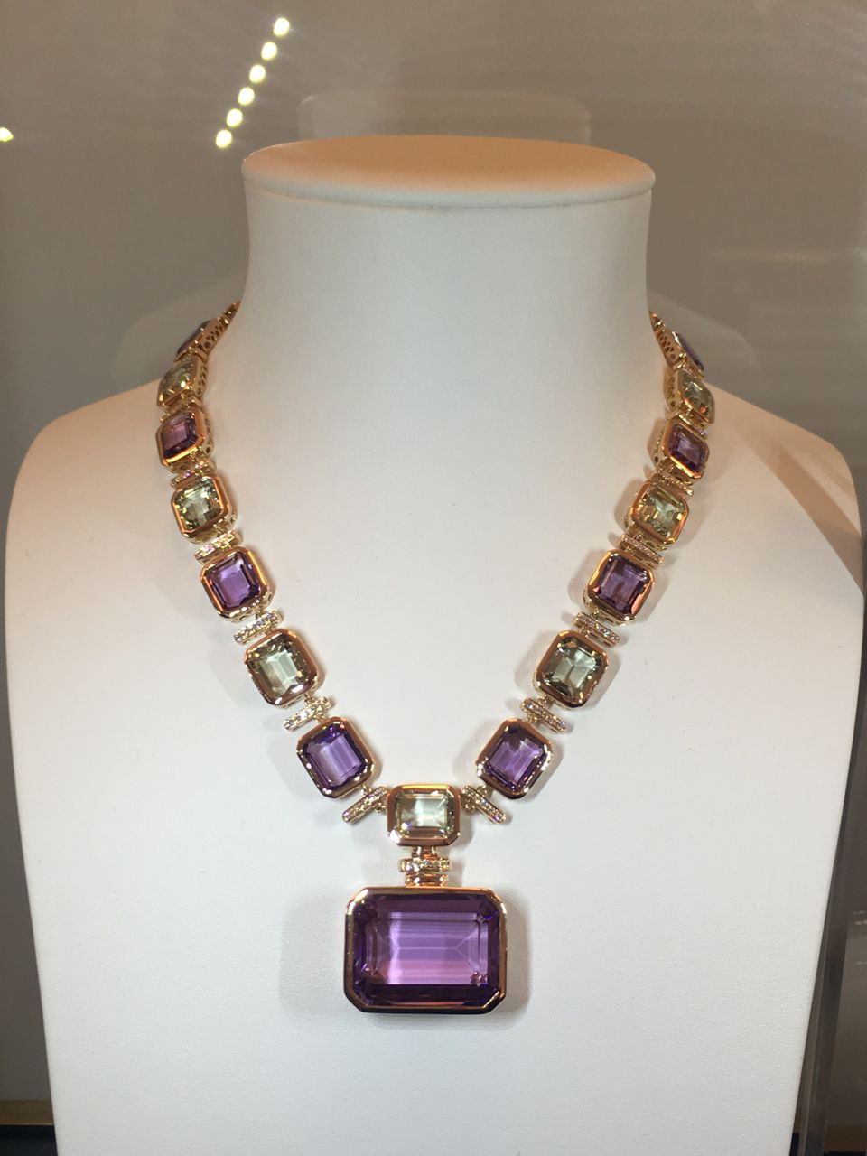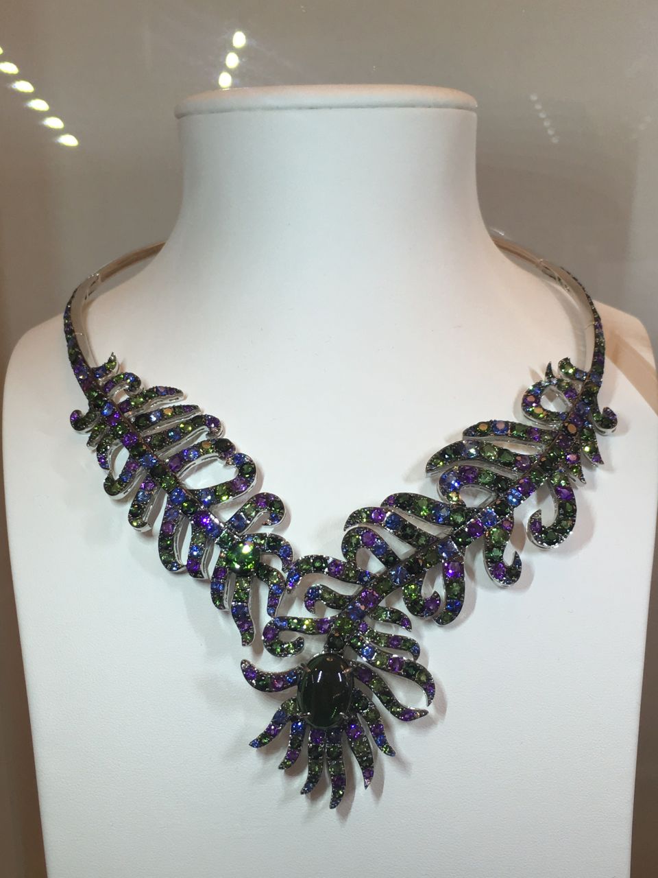 Les créations sont présentées dans ces vitrines épurées et lumineuses, permettant ainsi d’admirer chacune des facettes des bijoux présentés.