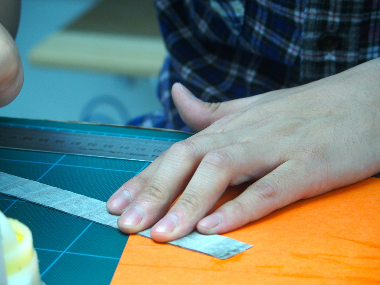 Pendant que Manon travaille la tranche de son mini Réjane, Kotaro s’applique à la création des lanières, véritable puzzle pour rendre les jointures invisibles.