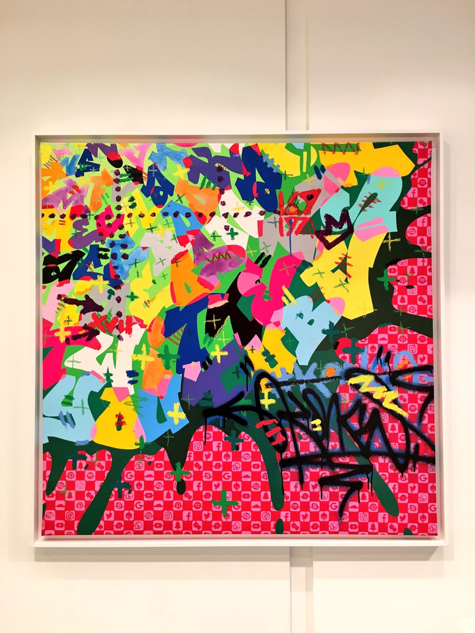 Sur chacun des tableaux, les icônes de nos réseaux sociaux préférés. Parce que finalement, ne sont-ils pas à la jeunesse d’aujourd’hui ce que le graffiti était à la jeunesse d’hier !