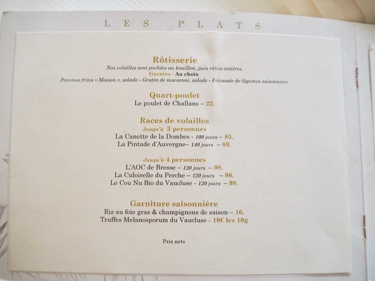 Côté volaille mijotée c’est le poulet jaune du Gers truffé qui fera vaciller votre volonté.