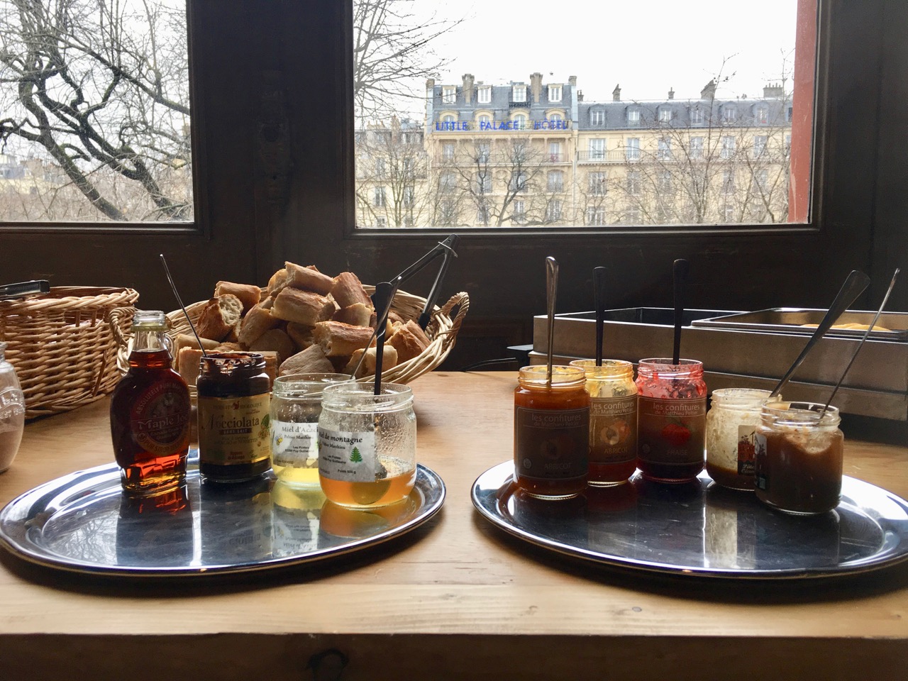 Alors finalement, ce brunch, il était comment ? Je dirais que la réponse dépend de la configuration du groupe de convives et de leurs attentes. Si vous cherchez un lieu cosy et chaleureux, des fauteuils moelleux et accueillants, passez votre chemin. Ici, tabourets (hauts ou bas) et bancs sont les seules assises proposées. Difficile de dire que le confort prime. La hauteur sous plafond, la taille de l’espace participent à cette sensation assez peu chaleureuse.