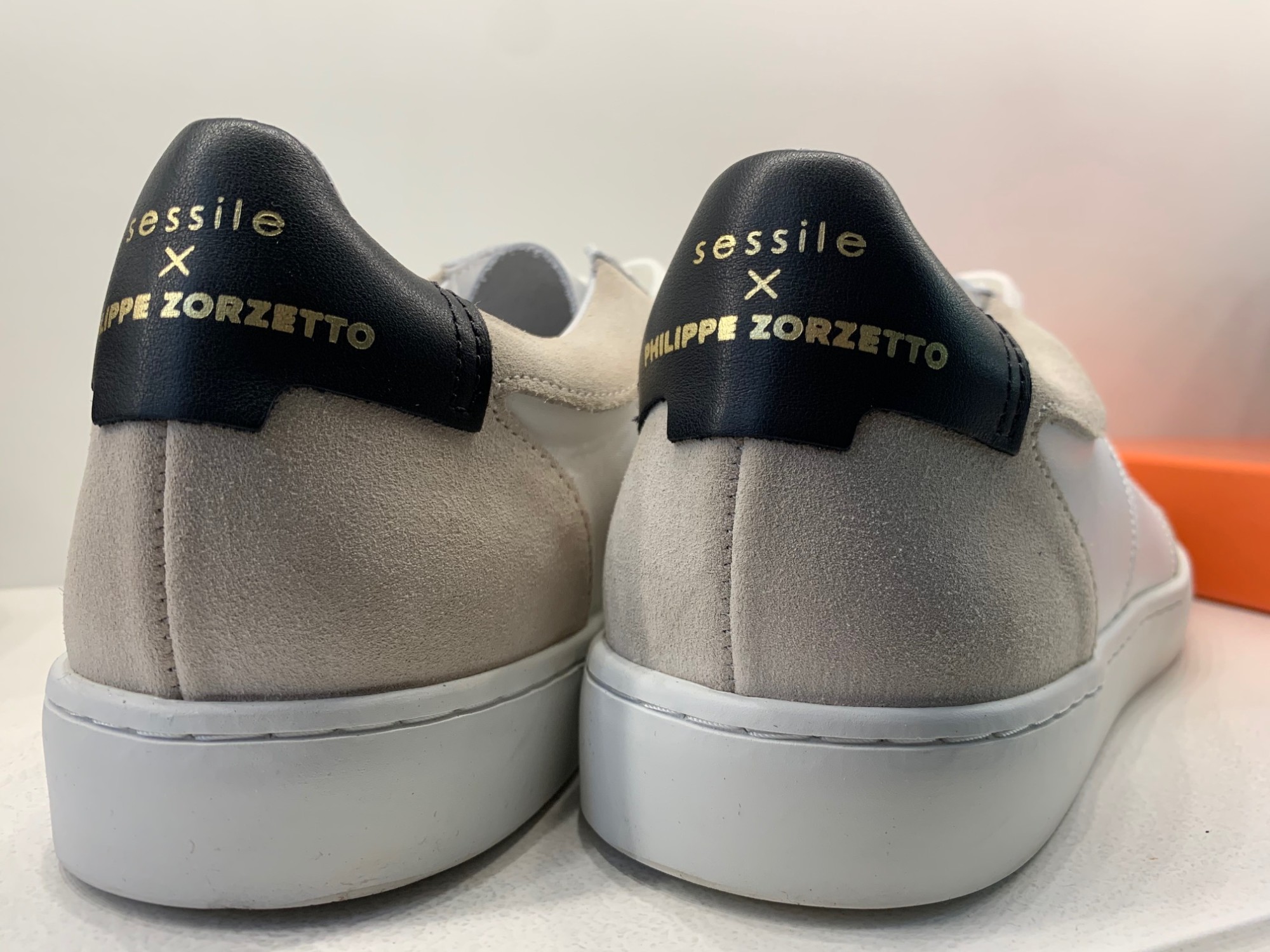 C’est une rencontre avec la toute jeune marque Sessile, 100% made in France, qui lui donne l’idée de cette collaboration. Les sneakers Sessile x Philippe Zorzetto sont nés.