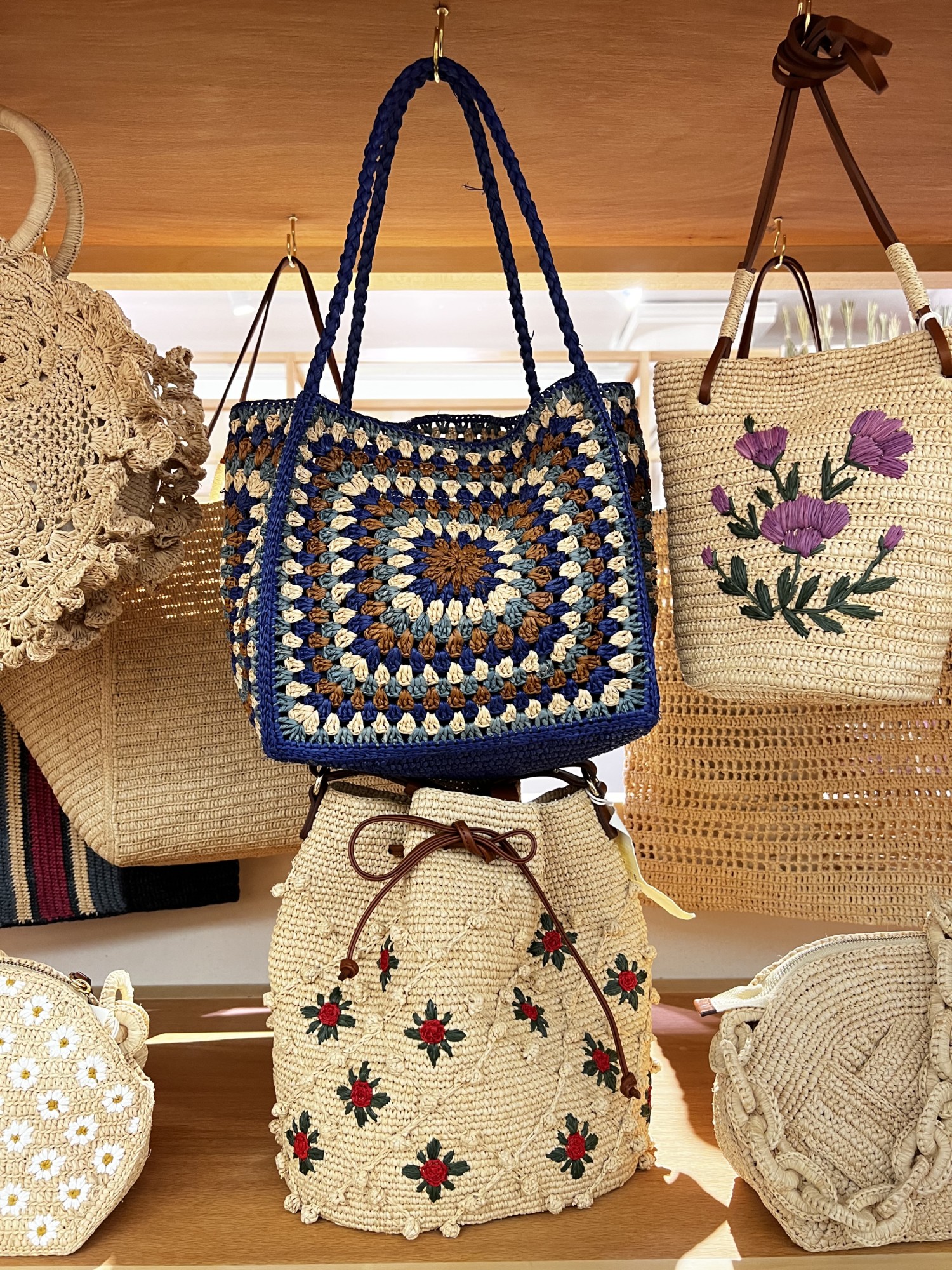 Il y a également Marie Marie Amsterdam qui embrasse la tendance des accessoires en crochet de fils colorés pour ces cabas aux teintes acidulées.