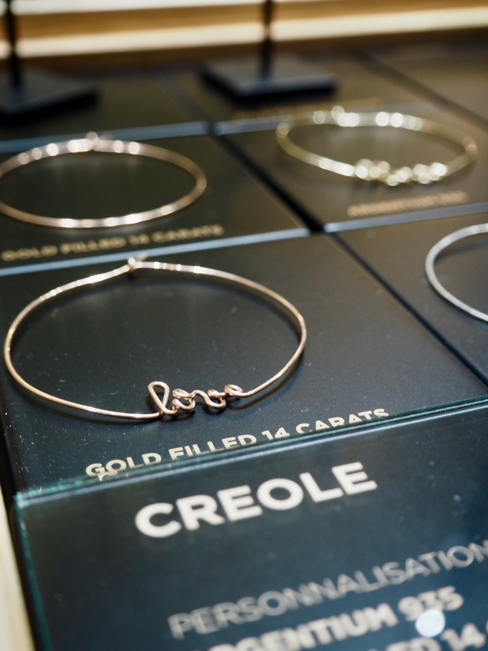 L’espace est chaleureux et accueillant. Un coin personnalisation permet également de raccourcir les chaînes si besoin et de faire personnaliser ses bijoux.
