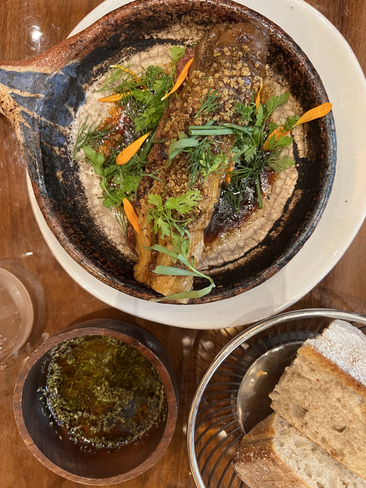 Pour finir avec le baba, auquel la marmelade de pamplemousse confère l’acidulé parfait pour clore ce repas. Chez Nosso, la cuisine est sans chichi ni arrogance, réussissant à séduire en toute simplicité.