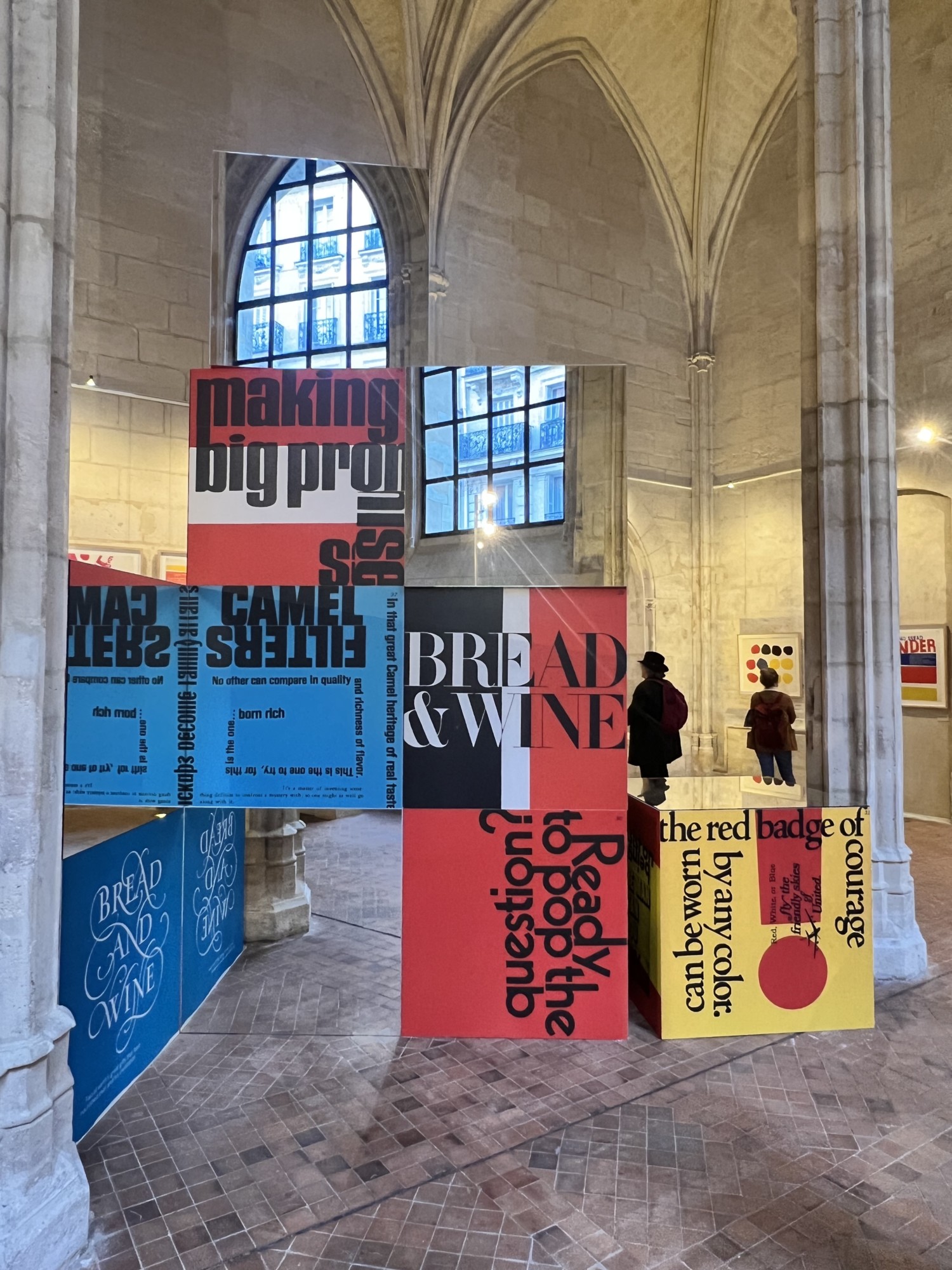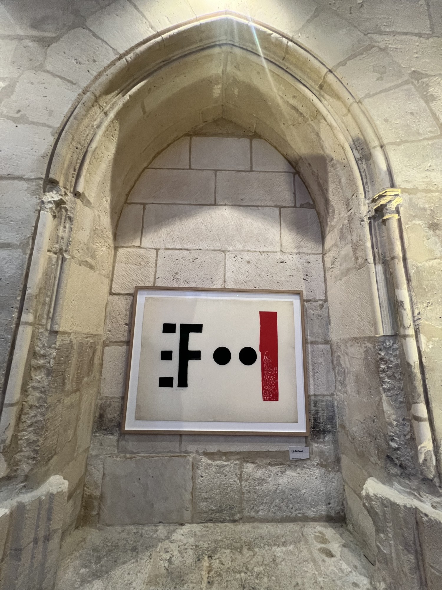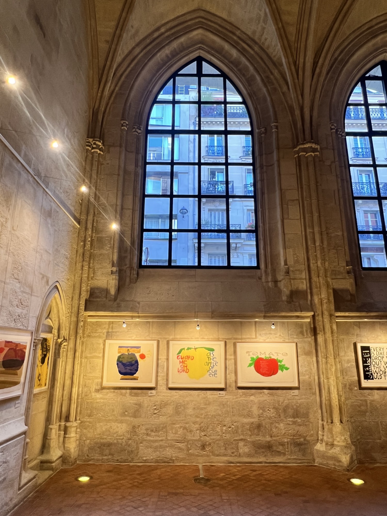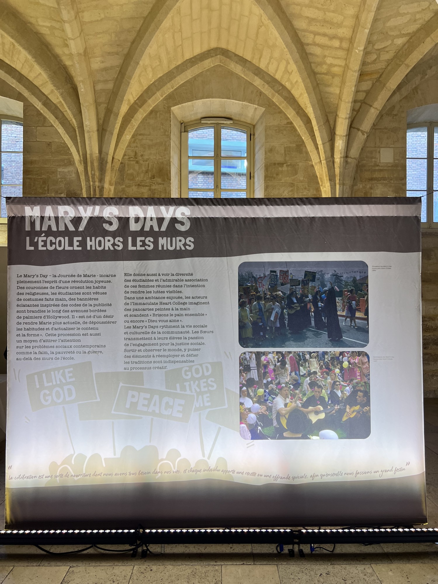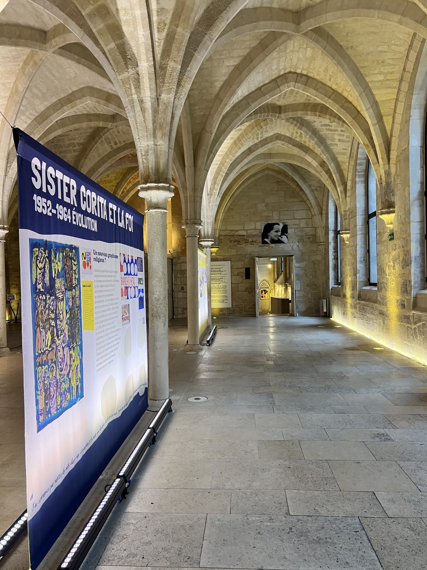 Enfin, l’exposition se déroule dans tous les espaces de l’édifice. La grande neff majestueuse dans laquelle on découvre la vie de Corita, mais également 3 autres emplacements habituellement fermés au grand public.