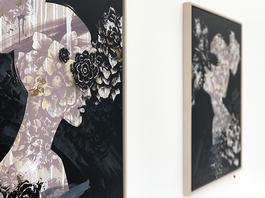 Pour la Master bedroom, c’est SKIO qui prend la main. Ses silhouettes féminines s’intègrent à la perfection au décor qu’il créé pour leur donner l’écrin qu’elles méritent.