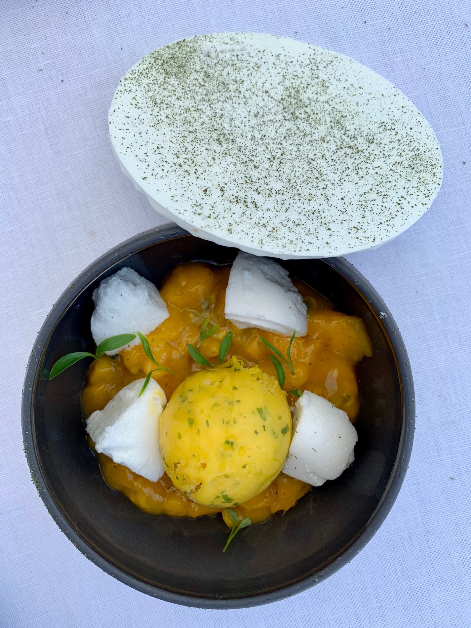 Le menu unique, et son accord mets vins, sont un périple entre la France et Israël, mais aussi à travers le monde. Saveurs, techniques culinaires, épices et mets se mêlent pour offrir le meilleur des cuisines de France et de Méditerranée. Quant aux vins, ils émerveillent les sens, nous entrainant de France en Autriche en passant par l’Afrique du sud.
