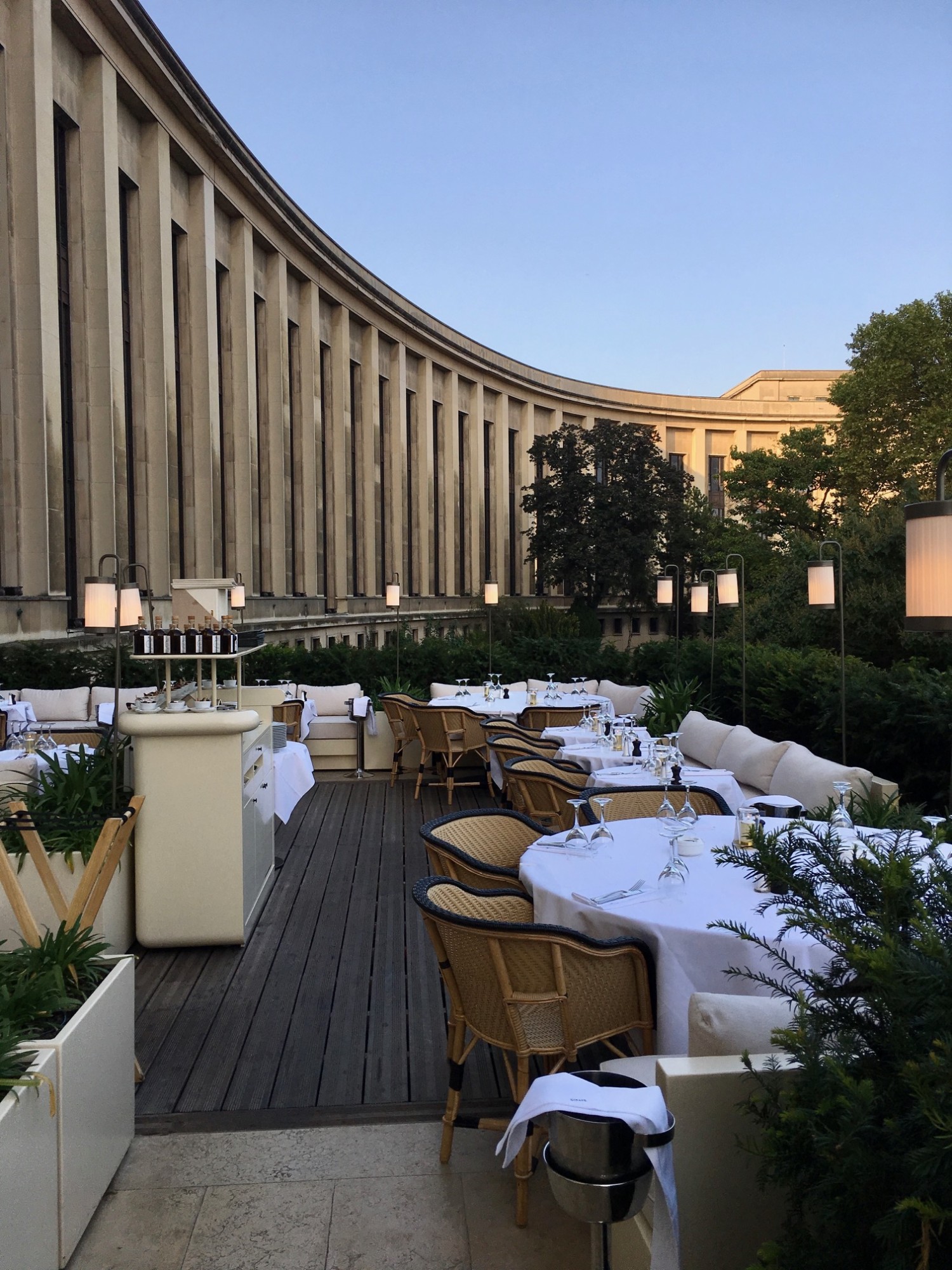 On peut diner du mardi au samedi, et le dimanche soir, ce sera assiettes d’entrée à cumuler et à partager, pour un apéritif dinatoire dans un cadre magique.