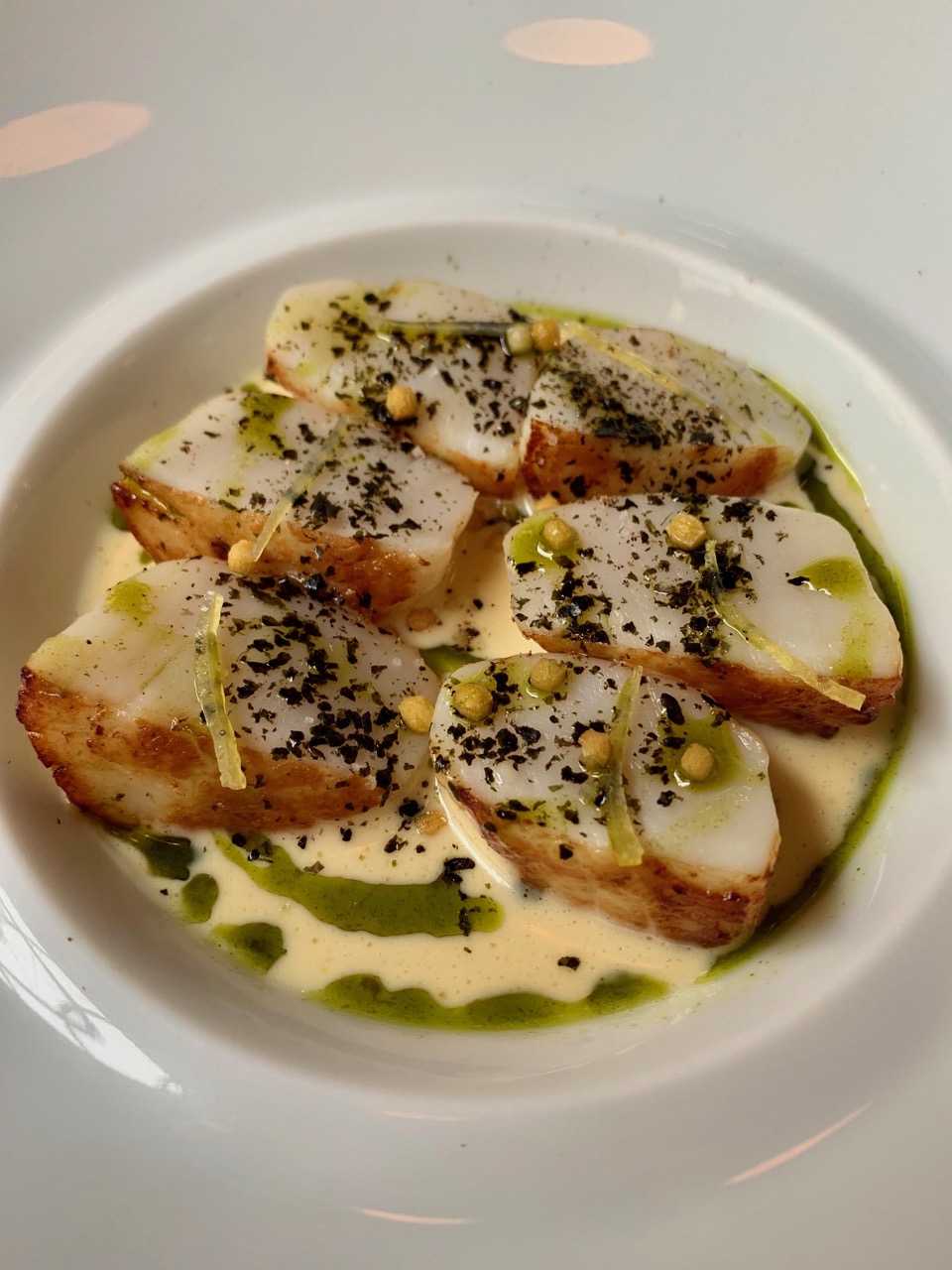 Quant aux Saint-Jacques, elles remplissent confortablement l’assiette, et sont servies avec une quantité plus que conséquente de panisse frite.