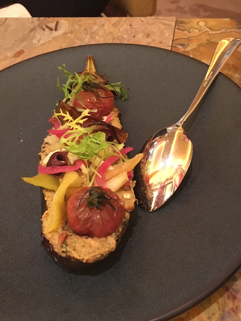 Ici, on se régale de cuisine familiale dans une atmosphère bon enfant. J’ai pu goûter le pastrami fumé et des feuilles de vigne farcis à la viande.