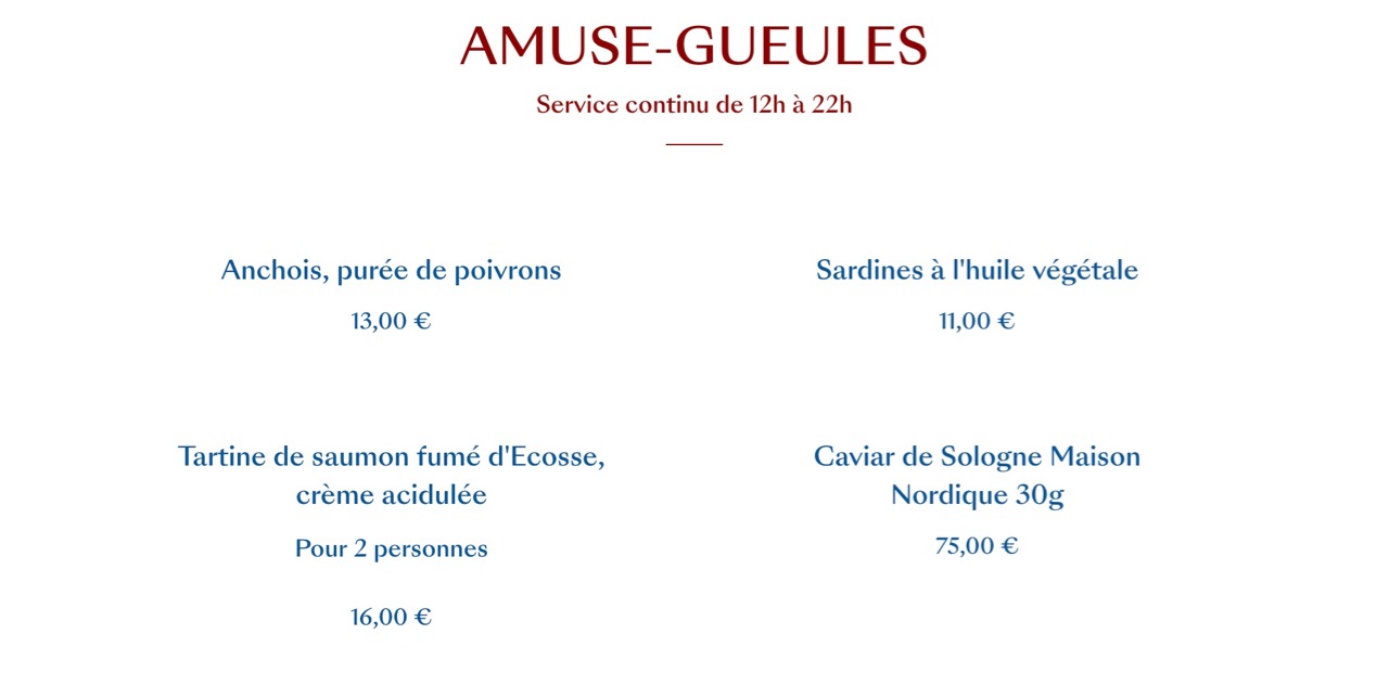 Une belle carte, une formule du jour, le plaisir simple du déjeuner, efficace et tellement parisien.