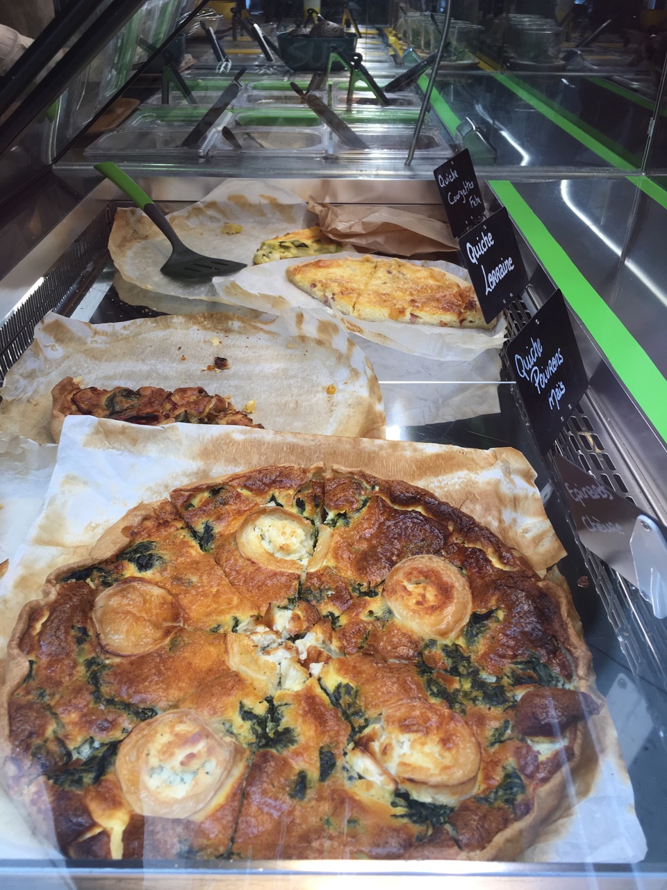 C’est alors que je passais que cette superbe quiche à peine sortie du four s’est installée en vitrine. Autant dire que j’en avais l’eau à la bouche !