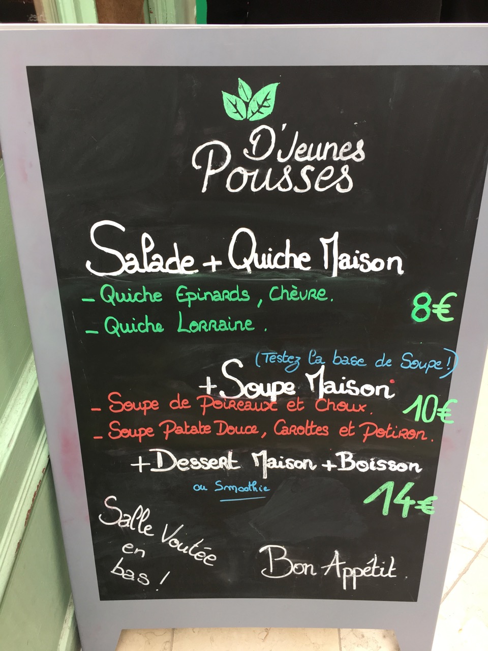 Pour finir cette traversée du passage dans la joie, on termine chez Joyeux. Leur nom, ils l’ont choisi pour accompagner leur philosophie de vie : accompagner des personnes porteuses d’un handicap mental ou cognitif pour les remettre au coeur de la ville. Aussi, dans ce restaurant, tout est cuisiné et servi par des personnes handicapées. On comprend mieux la baseline: « servi avec le coeur » !
