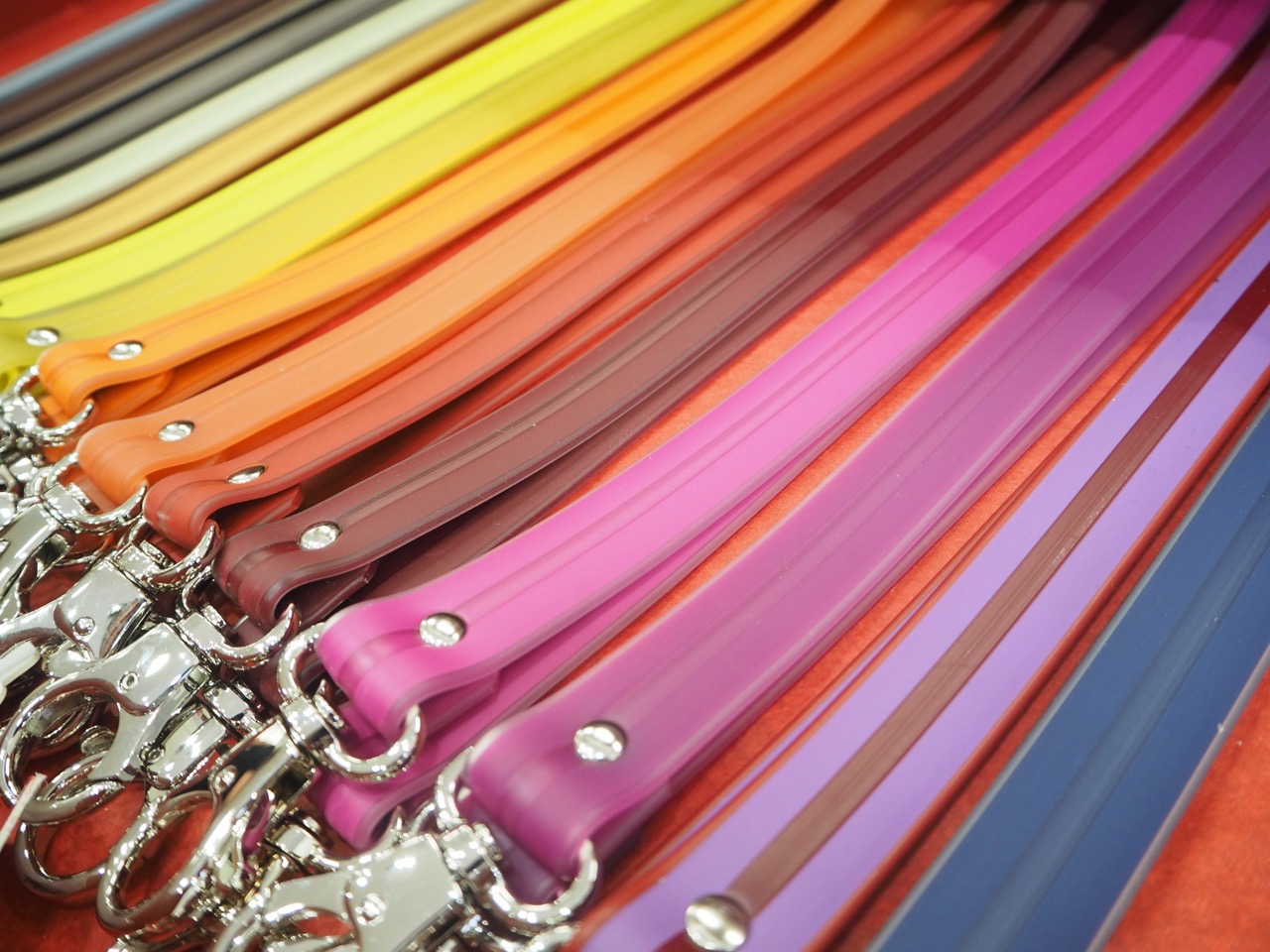 Elle propose également de superbes manchettes en cuir aux couleurs chatoyantes, et les ceintures qui vont avec.