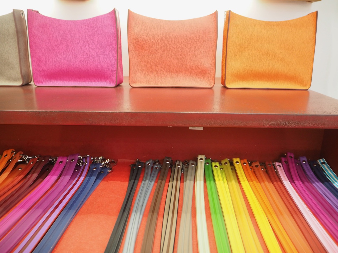 Chacun pourra choisir parmi 18 coloris de cuir pleine fleur et chèvre, et faire inscrire un motif ou ses initiales. tout cela se déroulera sous les yeux émerveillés des clientes qui assisteront au montage du porte monnaie fait uniquement pour elles !