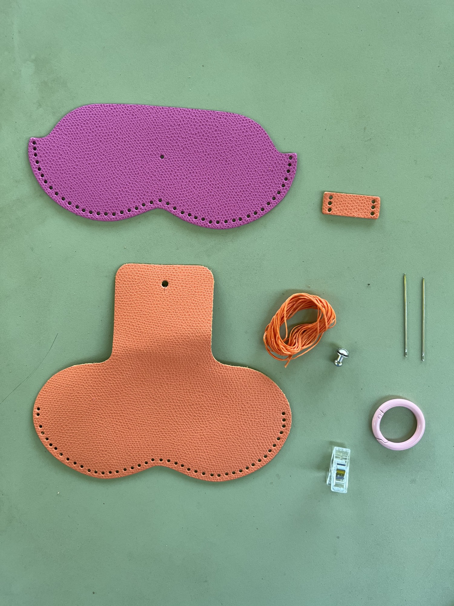 Il y a le cuir, recyclé, le fil et les aiguilles, l’emporte pièce, la clouterie et la métallerie. Le livret d’explications propose un pas à pas extrêmement précis et détaillé. Et le résultat est au rendez-vous !