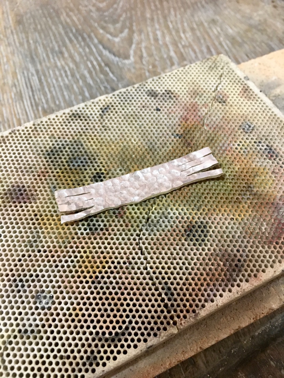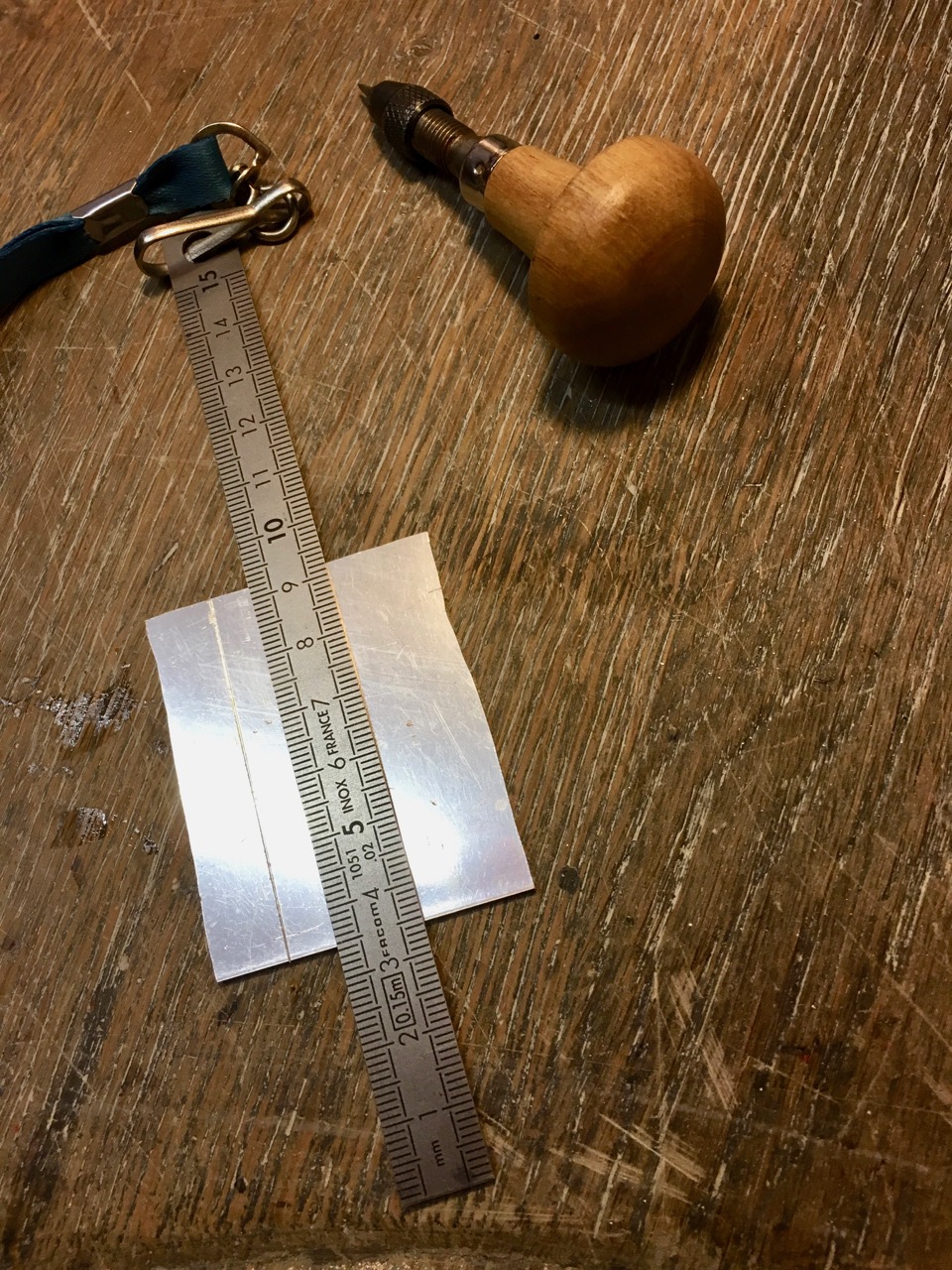 Petit à petit je prends en main les outils, une scie, un chalumeau , un marteau pour donner les reliefs souhaites, toujours sous l’œil attentif de l’experte. Il faut prendre des mesures, tracer les traits de découpe, scier avec précaution, chauffer, mettre en forme, souder, polir encore et encore.