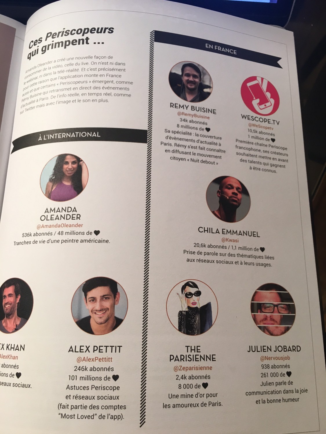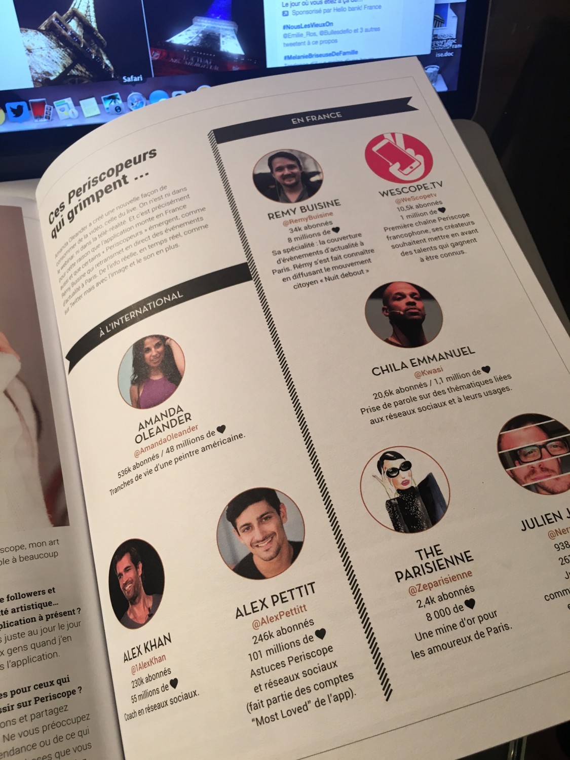 Naturellement donc je me suis jetée dans Periscope à coeur perdu ! Et le magazine Influenth m’a identifiée comme influenceuse parisienne sur ce média ! (2016)