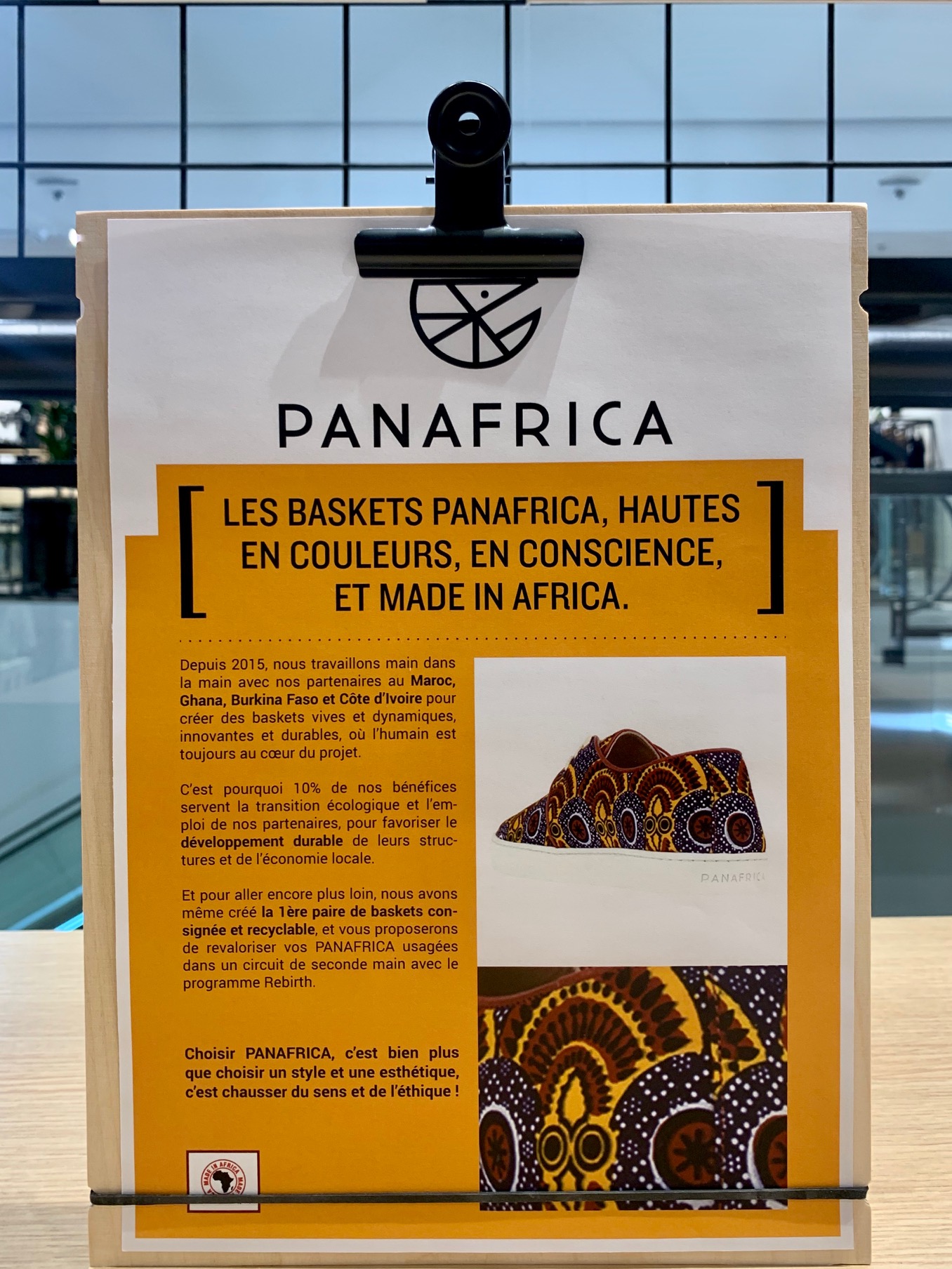 Le Monoprix Montparnasse organisera régulièrement des ateliers pour recycler, réparer, collecter les vêtements usagés. Pour le reste, le coton bio est privilégié, ainsi que les marques aux valeurs affirmées. Par exemple dans l’espace baskets , ce sont les modèles désormais familiers de Faguo, Caval ou Panafrica que vous pourrez acquérir !