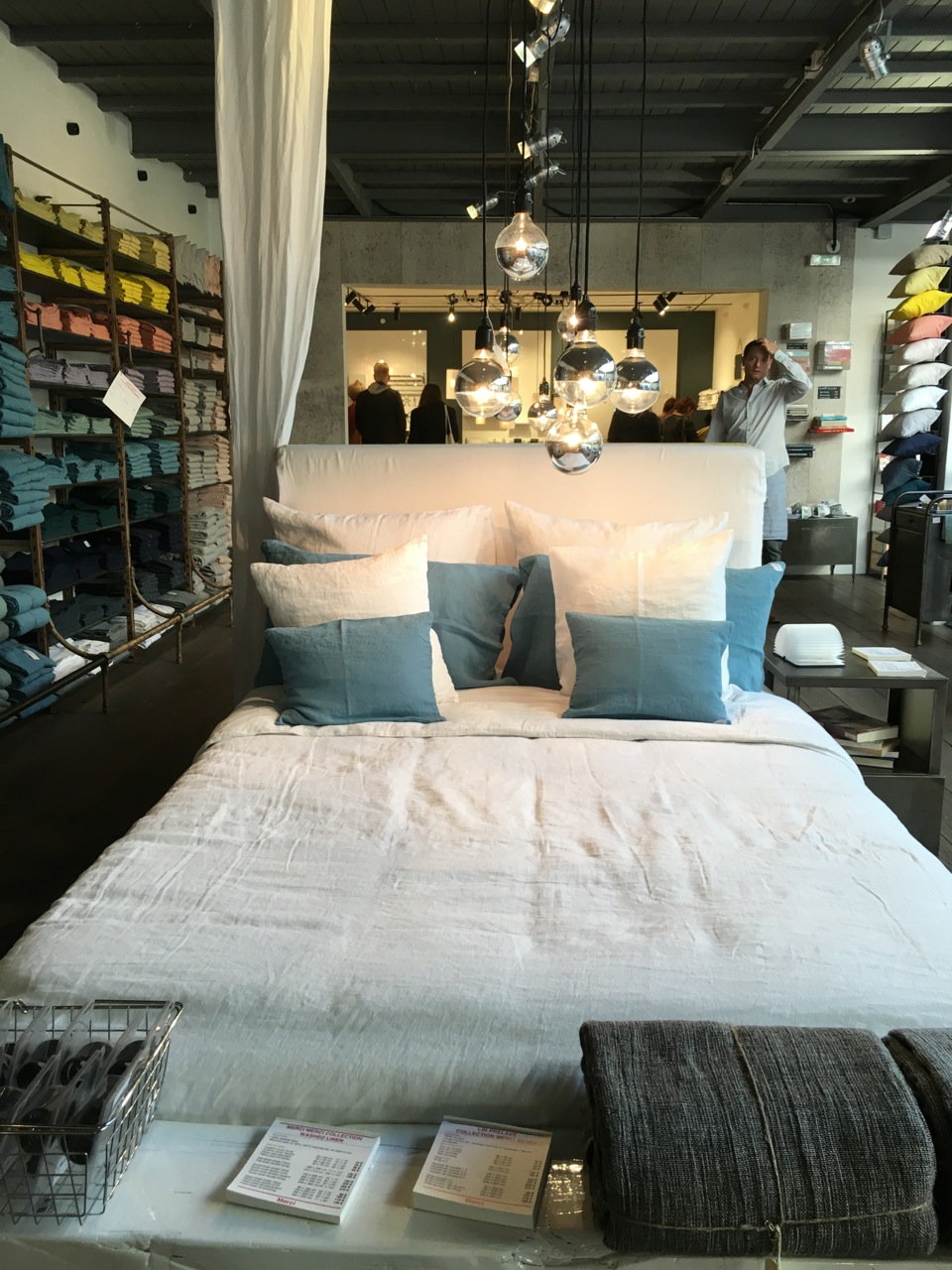 Là aussi, lin et matières nobles sont à l’honneur, puisque la confection de linge de maison est le premier métier de ce couple d’italien qui s’est installé à Paris. Et il y en a pour toutes les pièces de la maison, de la chambre des enfants à la salle de bain.