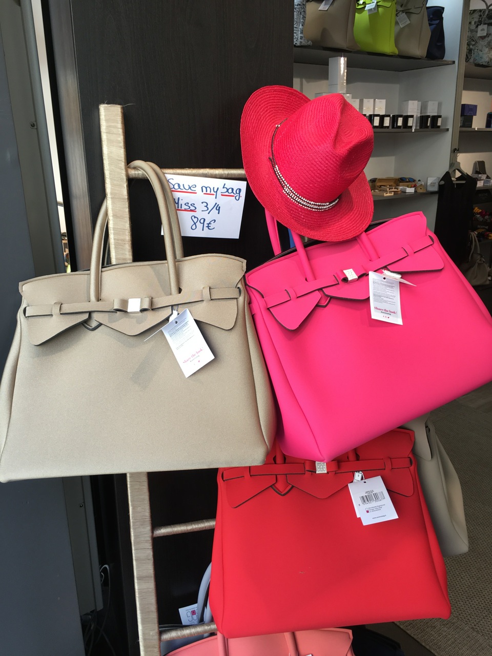 La pièce phare du moment, celle qui m’a fait passer le pas de sa porte, ce sont ces sacs, légers comme une plume. Les sacs Save my bag.