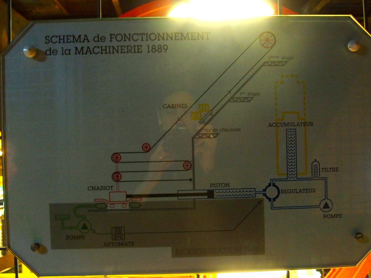 A l’origine leur était fonctionnement hydraulique et une galerie avait été construite pour l’exposition de 1900 pour permettre de découvrir cette nouvelle technologie. La galerie a été conservée, même si elle est désormais nettement mieux sécurisée ! des schémas expliquent en détail le fonctionnement de ce système.