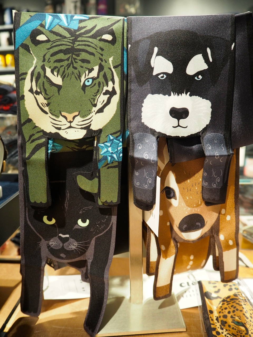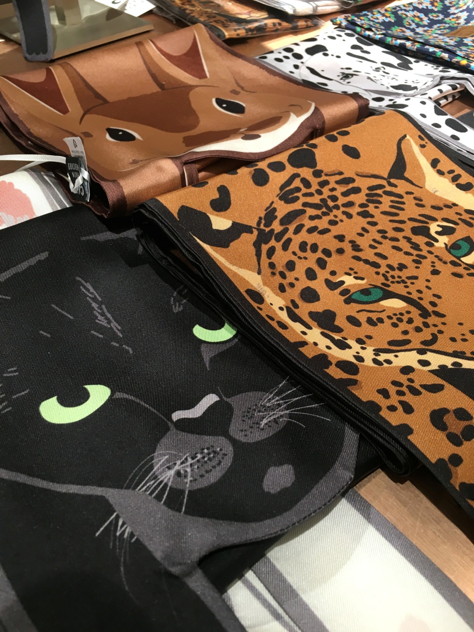 et puis il y a ces superbes écharpes en 100% soie au look unique. Pour un bestiaire d’un genre inconnu.