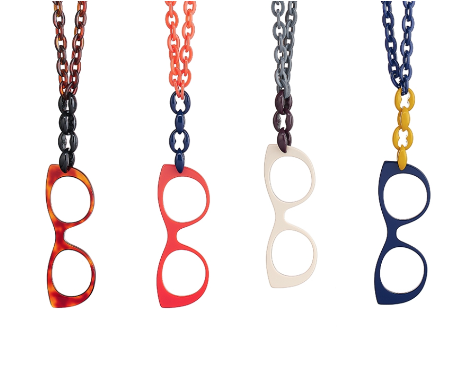 Sa première création d’optique sera son premier grand succès : le face-à-main ! Un véritable bijou qui permet d’avoir à portée de main un accessoire bijou à la dimension ultra pratique.