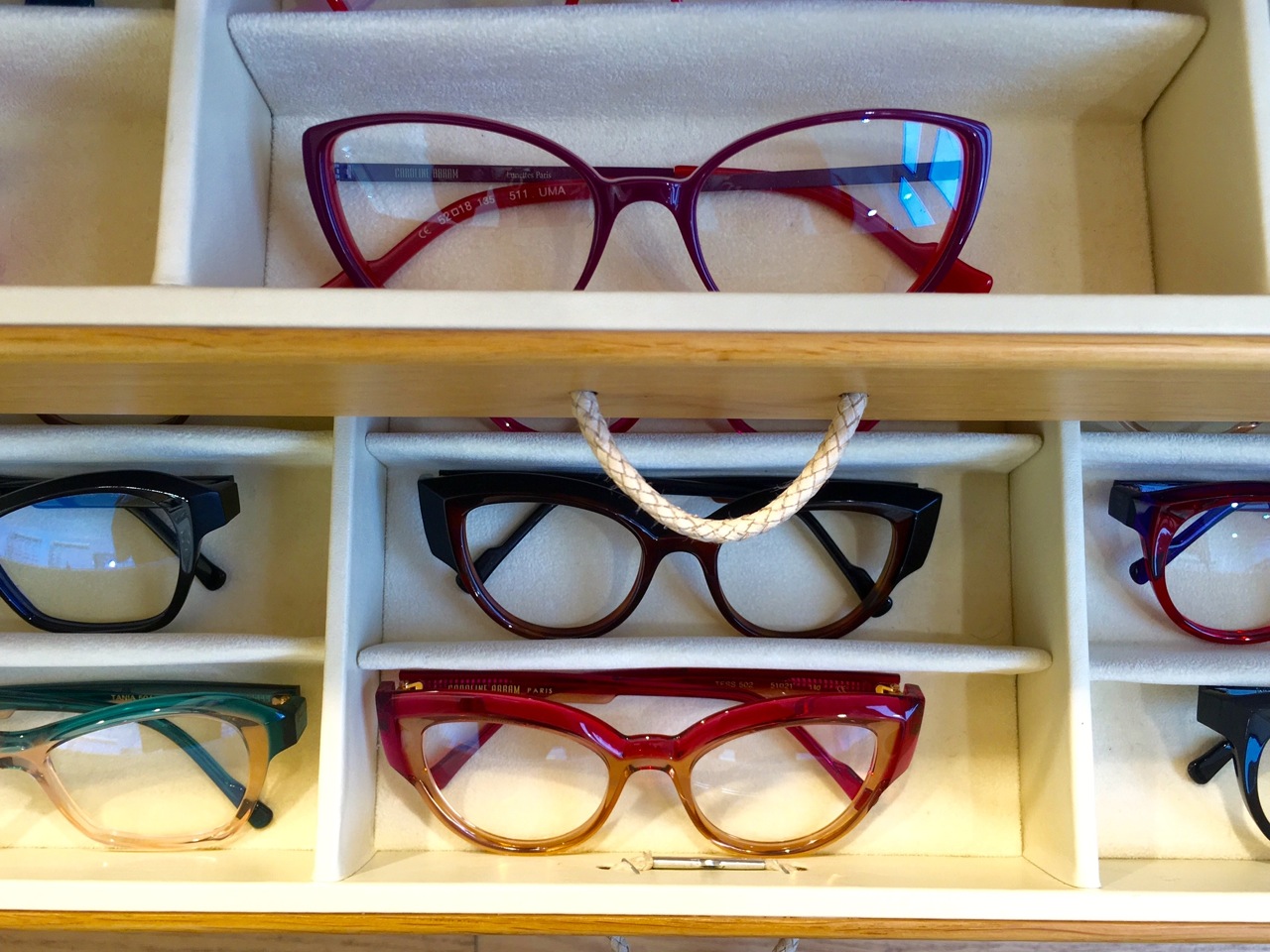 Et bien chez Caroline Abram, c’est comme si toutes les lunettes que j’aime étaient réunies en un seul lieu.