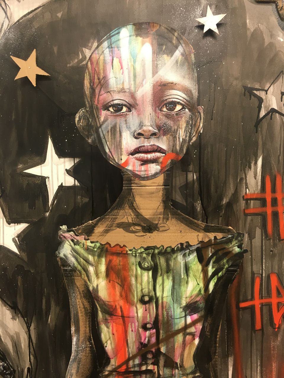 Le Marché s’est réinventé, restant fidèle à sa vocation commerçante qui date du XVème siècle. Et dans cette même démarche de renouveau, les propriétaires ont également eu une volonté que la première marque de son renouement avec la Ville se traduise par un acte fort qui permette de transposer sur les façades encore en travaux du Marché Saint-Germain sa reconnexion immédiate avec son environnement. Ils ont souhaité initier une intervention caritative et artistique, qui soit la transcription de ce qui fait vibrer la Capitale aujourd’hui et exprime sa contemporanéité.
