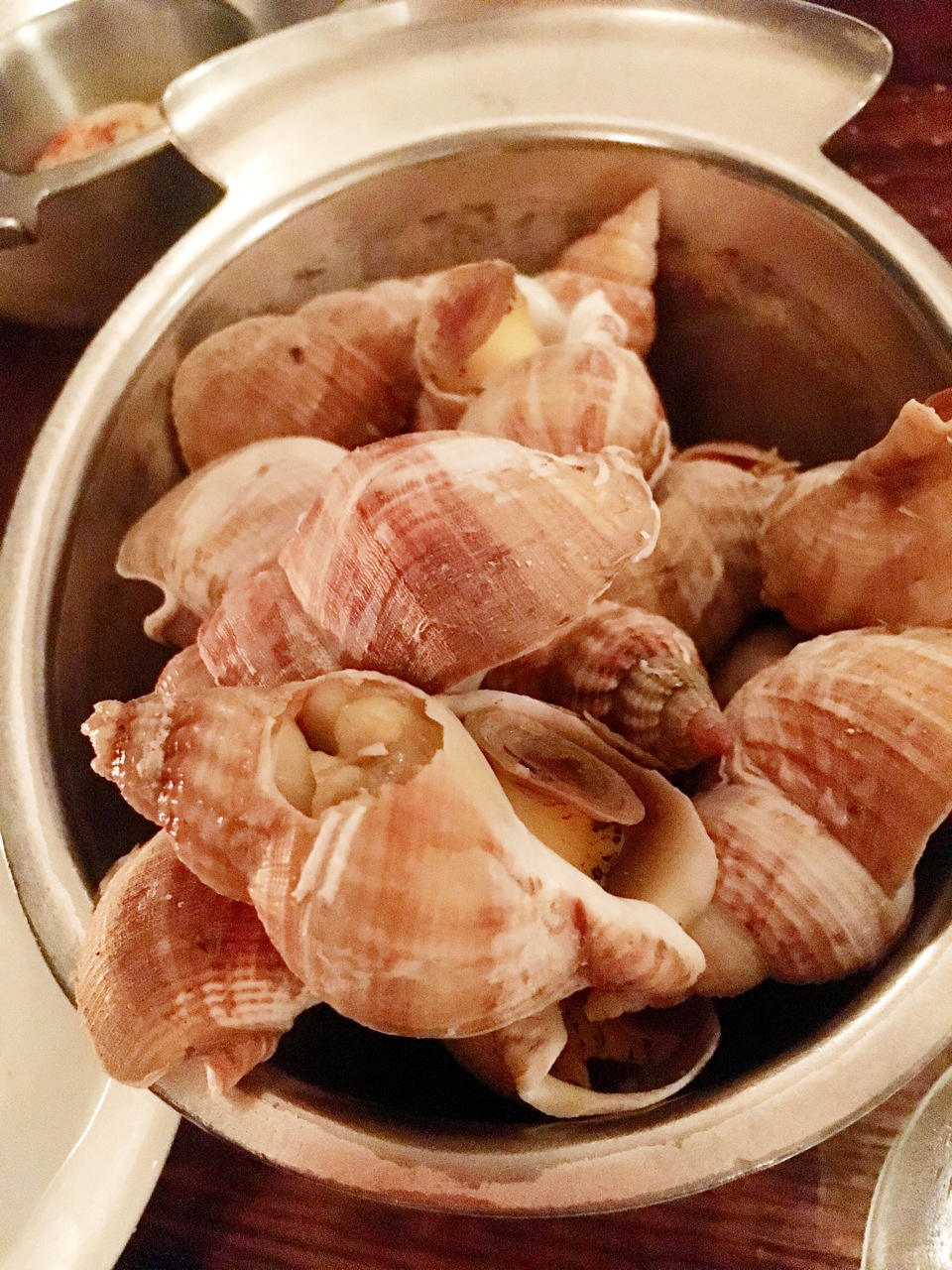 Et nous nous sommes délectés de chaque bouchée. Entre les rillettes de cabillaud qui fondent dans la bouche – qui eut cru que le cabillaud pouvait avoir une vraie saveur , et puis les bulots, délicieusement parfumés, au goût fumé, parfait écho aux sardines.