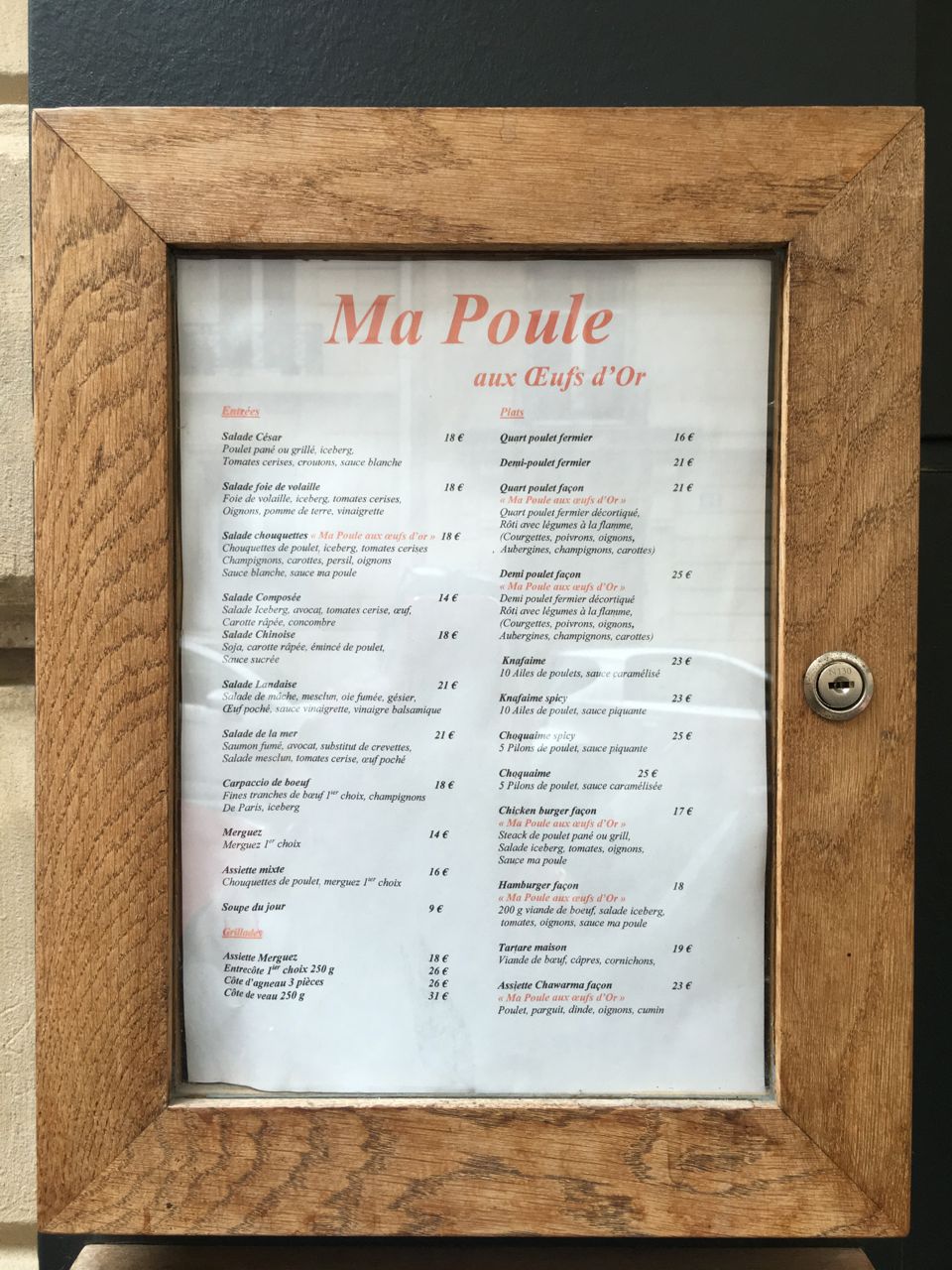 Puis, toujours sur ce même trottoir, des numéros impairs – il faut dire que, à l’image des Champs Elysées, la rue Gustave Courbet à un côté nettement plus riche que l’autre – un restaurant spécialisé en volailles et qui porte bien son nom : Ma Poule ! Pané, en salades, en version « ailes ou pilons « , l’adresse parfaite pour une soudaine envie de poulet.