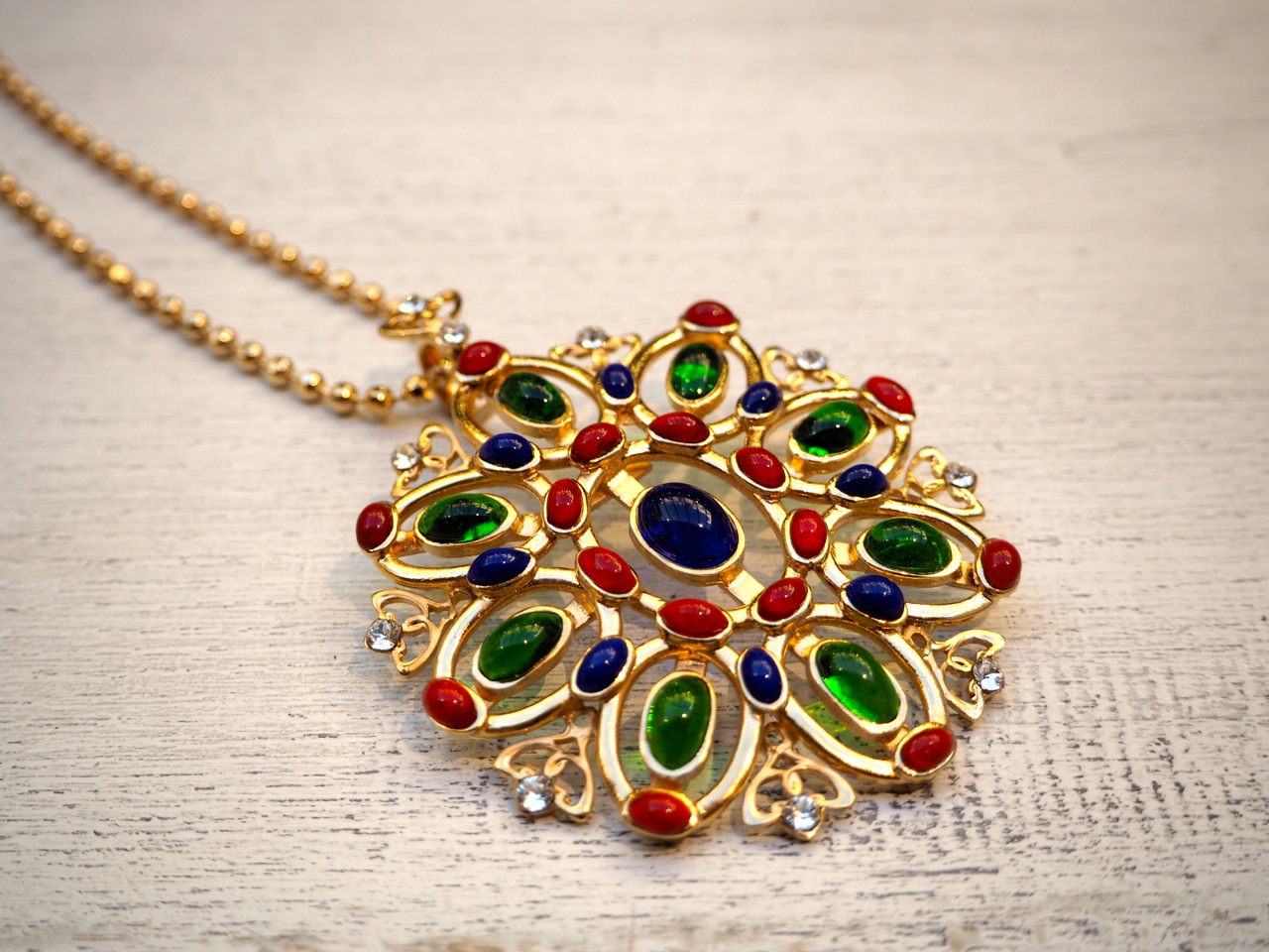 Elle affectionne particulièrement les sautoirs qui viennent s’entourer autour du cou et plonger dans un décolleté. S’il ne fallait ne citer qu’un bijou, ce serait surement sa colombe emblématique, symbole de paix.