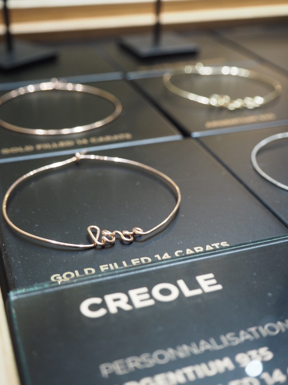 Un mot, un prénom, vous pourrez choisir et il apparaitra devant vous dans les mains expertes d’un des artisans de la boutique atelier de la rue Richelieu. Atelier Paulin a commencé par des bracelets, mais propose désormais des créoles, des bagues, des fibules et des pendentifs. Fabriqués en gold filled, bien plus résistant que le plaqué or, les bijoux résistent à l’eau et ont une tenue impeccable.
