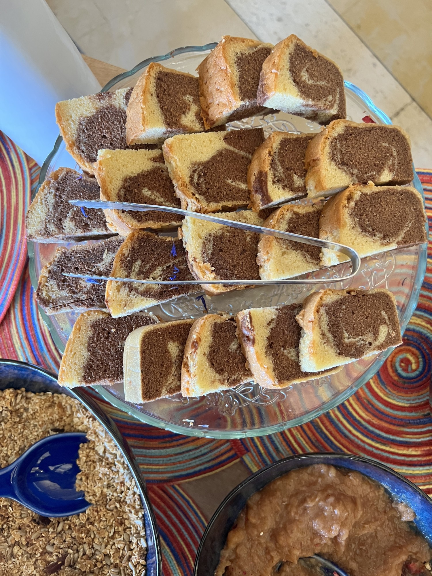 Une grande salle, aux tables largement réparties dans l’espace garantissant la quiétude du moment. Le brunch s’orchestre autour de deux buffets : le salé et le sucré.