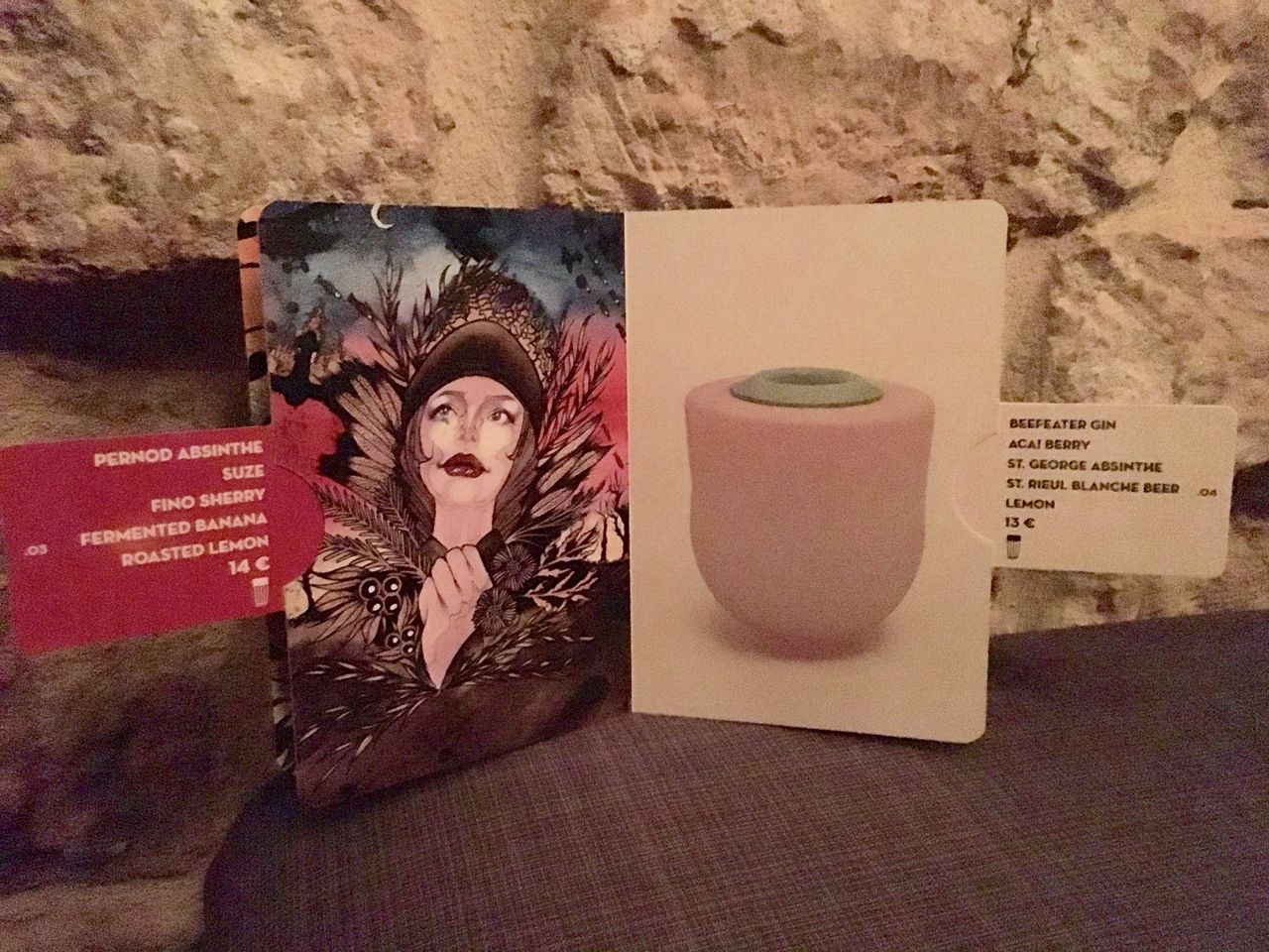 Mais si, comme moi, vous n’êtes pas mûre pour cette aventure une peu trop conceptuelle, vous avez la possibilité de tirer la languette qui dévoile les ingrédients de chacun des cocktails !