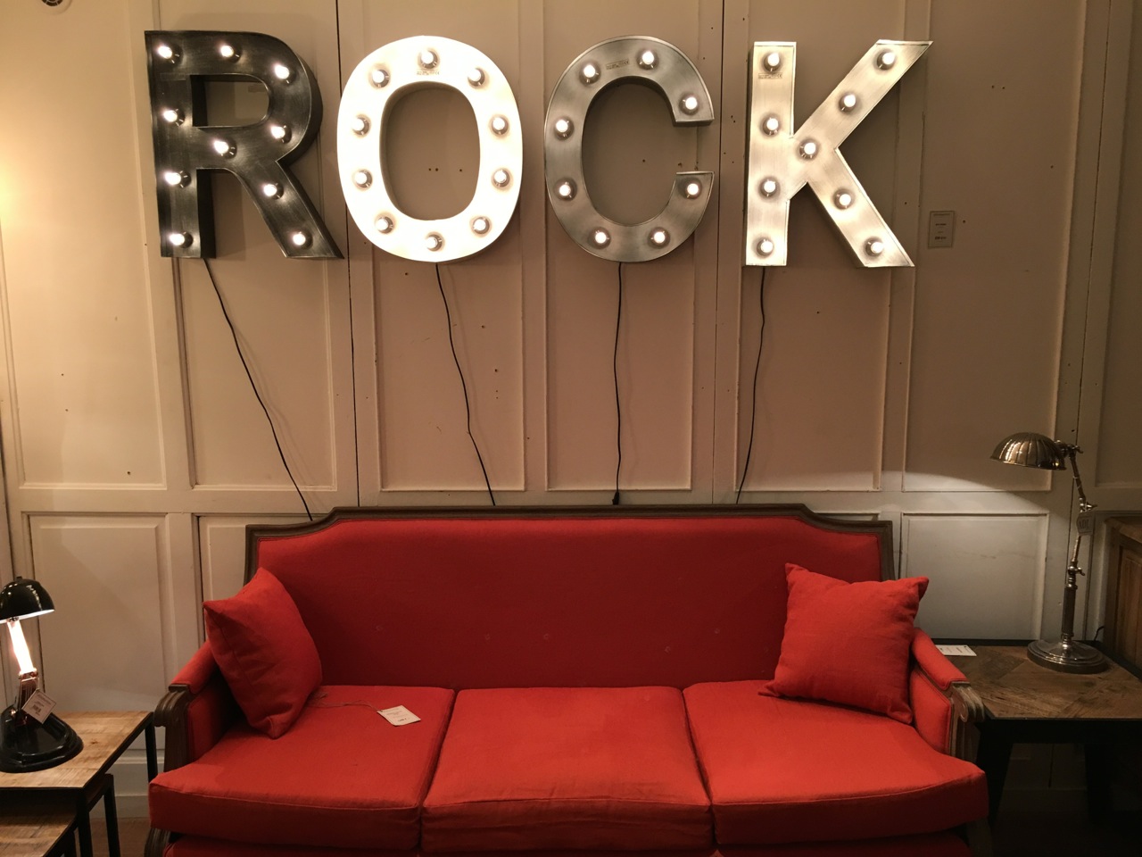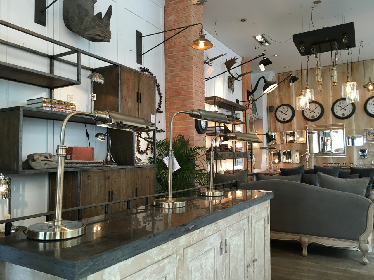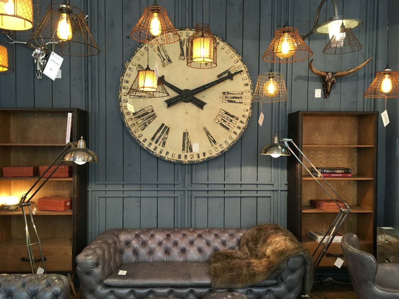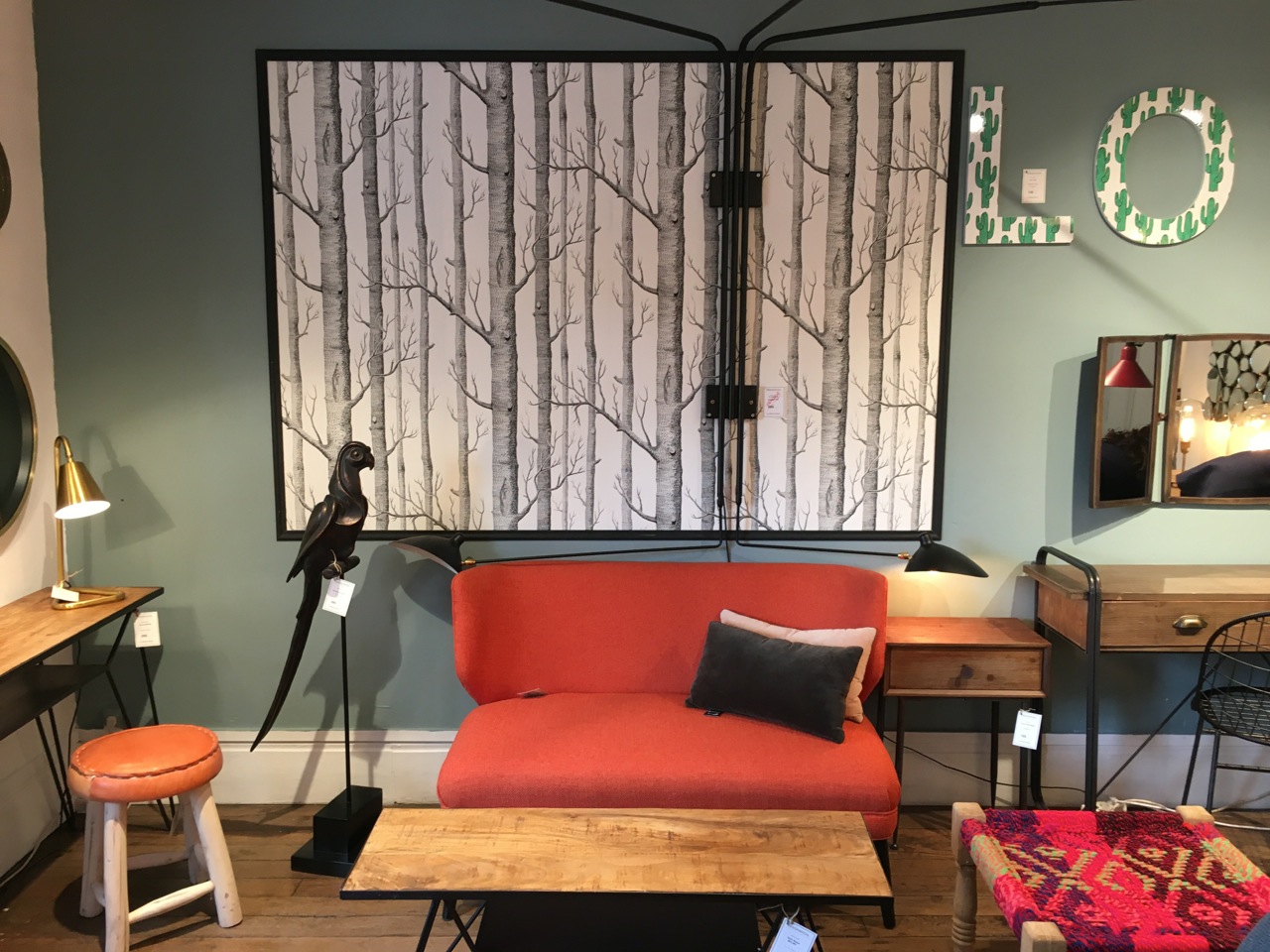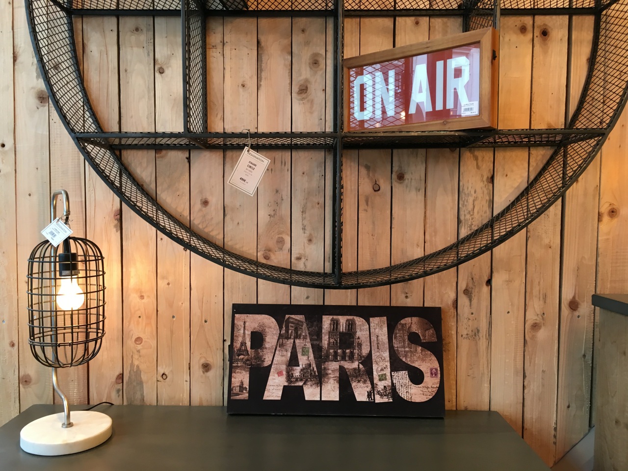 On y trouve des objets de décoration, des luminaires dans la lignée de la tendance du moment – ampoules filaments, appliques industrielles.