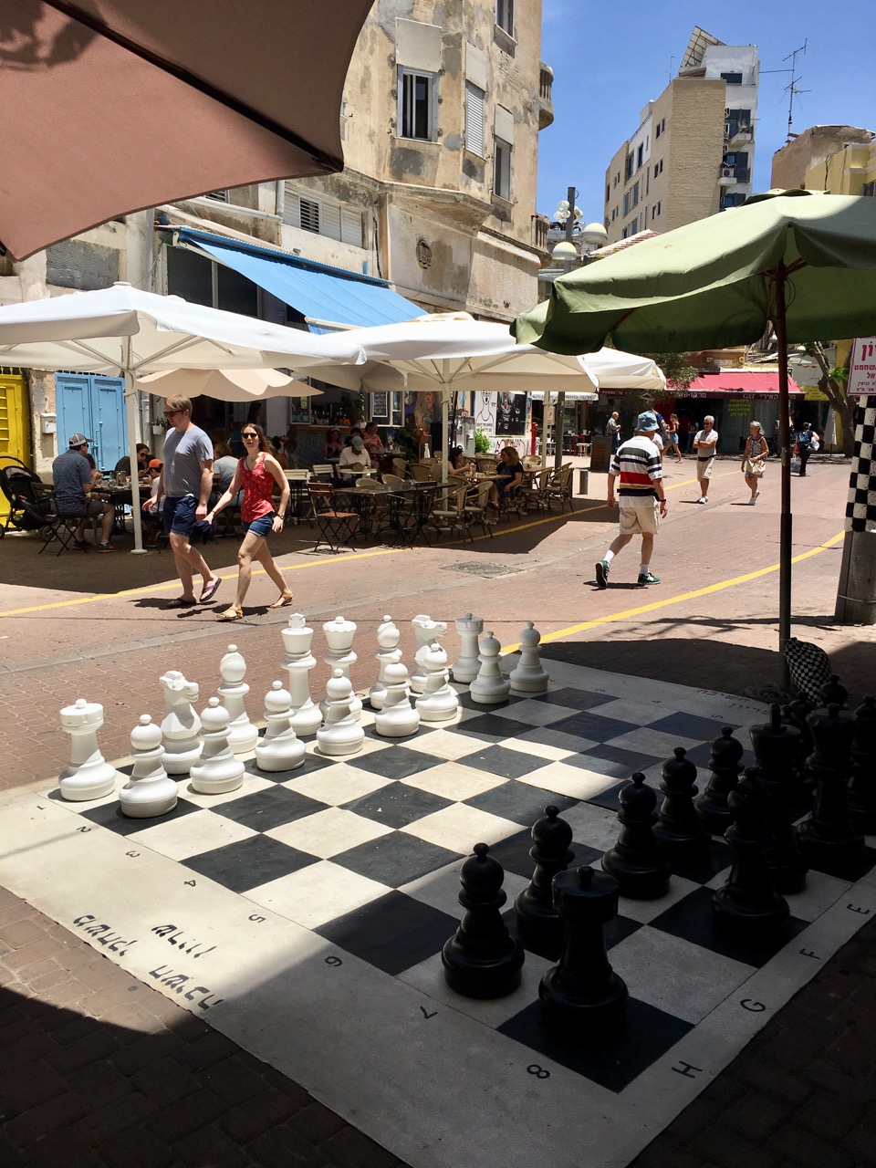Il y a la plage où l’on joue aux matkots ( raquettes de bois et petite balle aussi ferme que rapide), Jerusalem beach. D’ailleurs, la plage est l’endroit parfait pour finir la journée, sur la Banana beach, au sud, en assistant au spectaculaire coucher de soleil sur l’église de Yafo qui se dessine sur le ciel qui s’embrase juste avant que l’astre ne sombre dans l’eau.