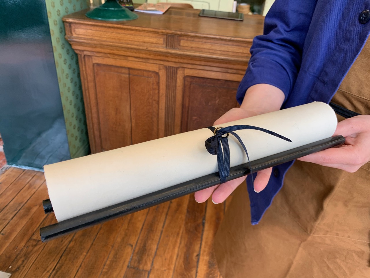 Dans la boutique trônent de magnifiques illustrations de Paris. Chacune d’entre elles, présentée comme un parchemin, a été imprimé dans l’atelier parisien d’Antoinette Poisson, expert en papier dominoté, puis peint à la main dans l’atelier montmartrois de Marin. De superbes souvenirs 100% fabriqués à Paris !