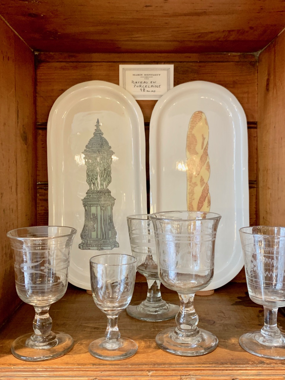 La vaisselle qu’il a créée pour l’occasion crie « Paris » à chaque motif ! Que ce soit avec l’auvent de la sortie d’une station de métro Guimard ou la chaise traditionnelle du jardin du Luxembourg, c’est Paris à tout va.