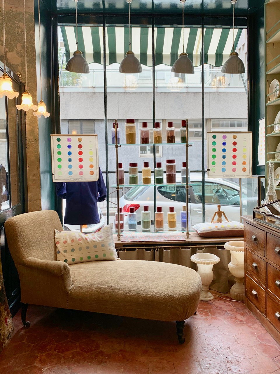 Tomettes usées, parquet qui craque, un superbe comptoir en bois, des meubles de métier et des trésors à chaque recoin. Bienvenue dans l’univers délicieusement suranné de Marin Montagut. C’est au coeur de Saint Germain des Prés, au 48 rue Madame, que ce voyageur invétéré a décidé de poser ses pinceaux. Pour notre plus grand plaisir.