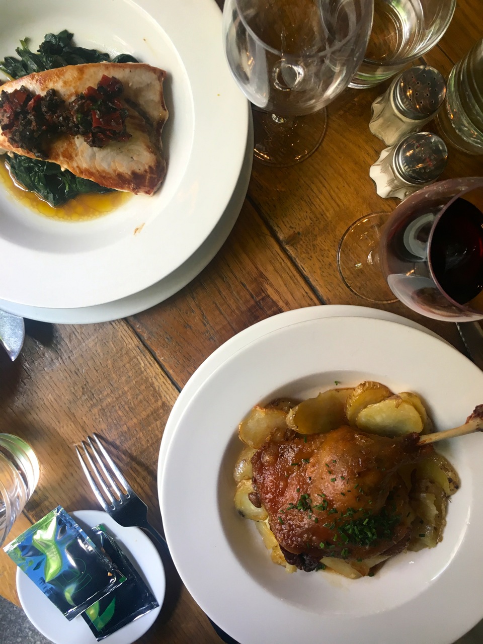Pour les plats, nous avons opté pour l’espadon, proposé au menu du jour à 15€ ( disponible tous le jours de la semaine sauf le weekend) et le confit de canard.