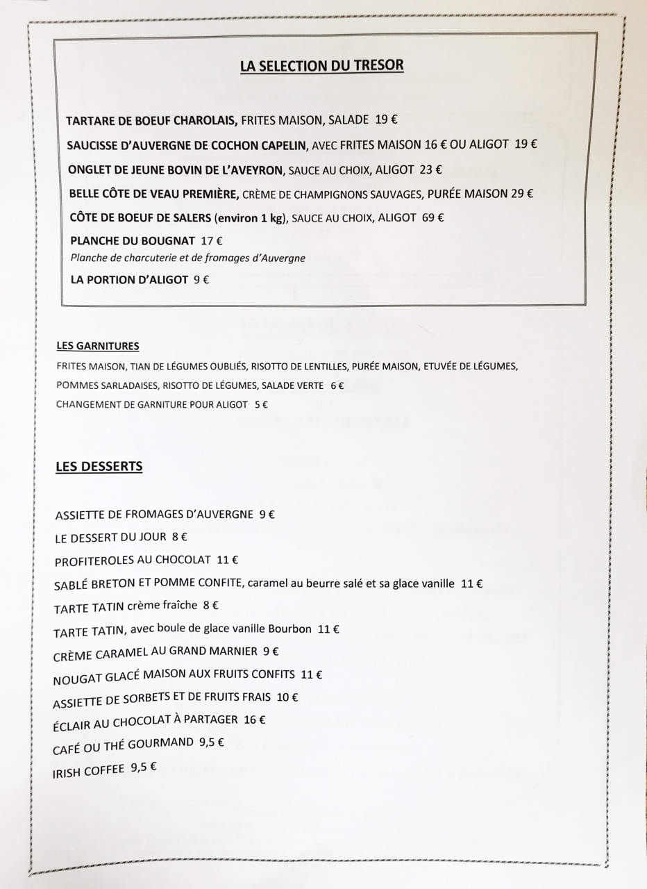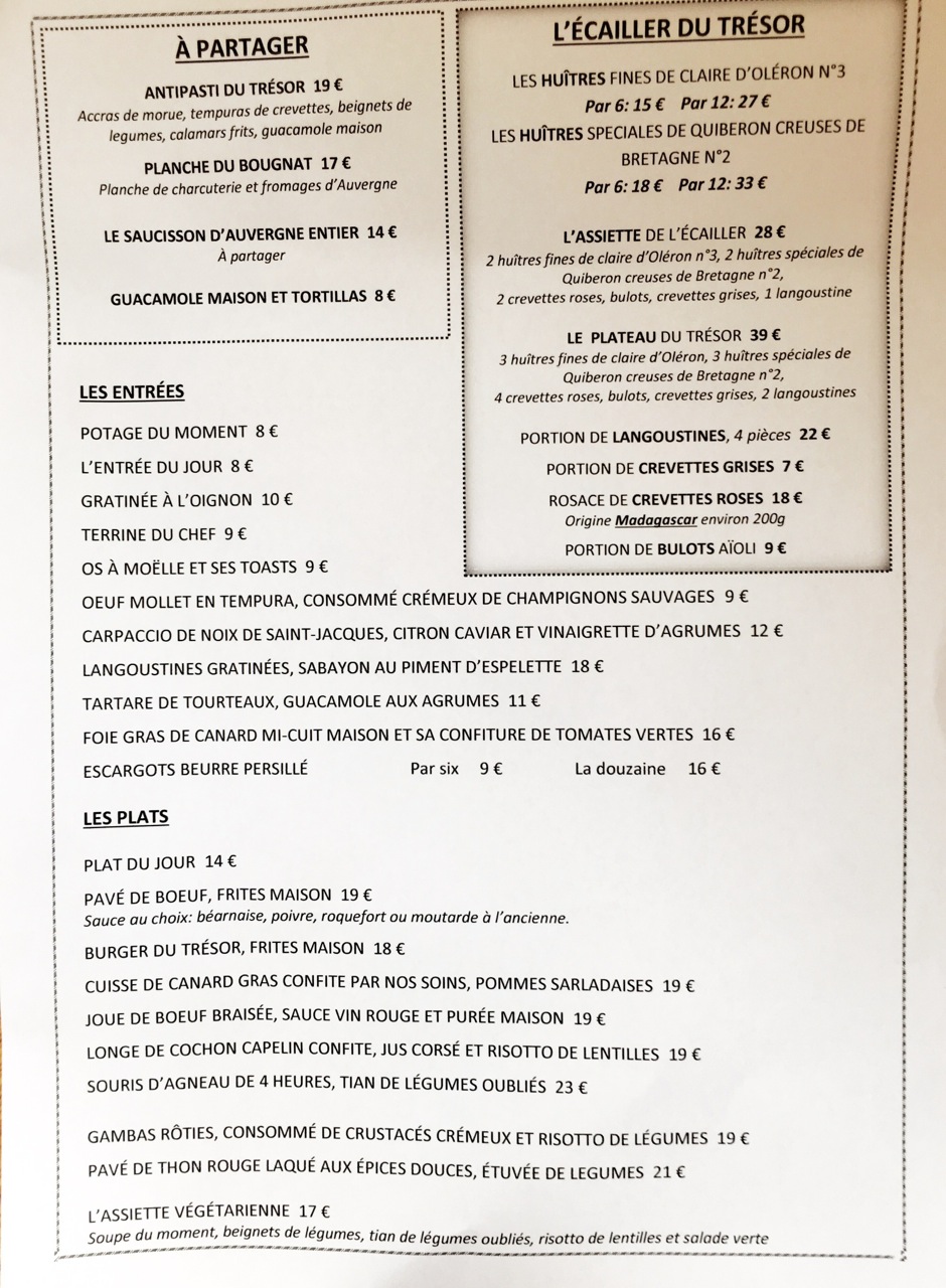Le Trésor est un bistrot chic, spécialisé en gastronomie auvergnate. Mais pas que.