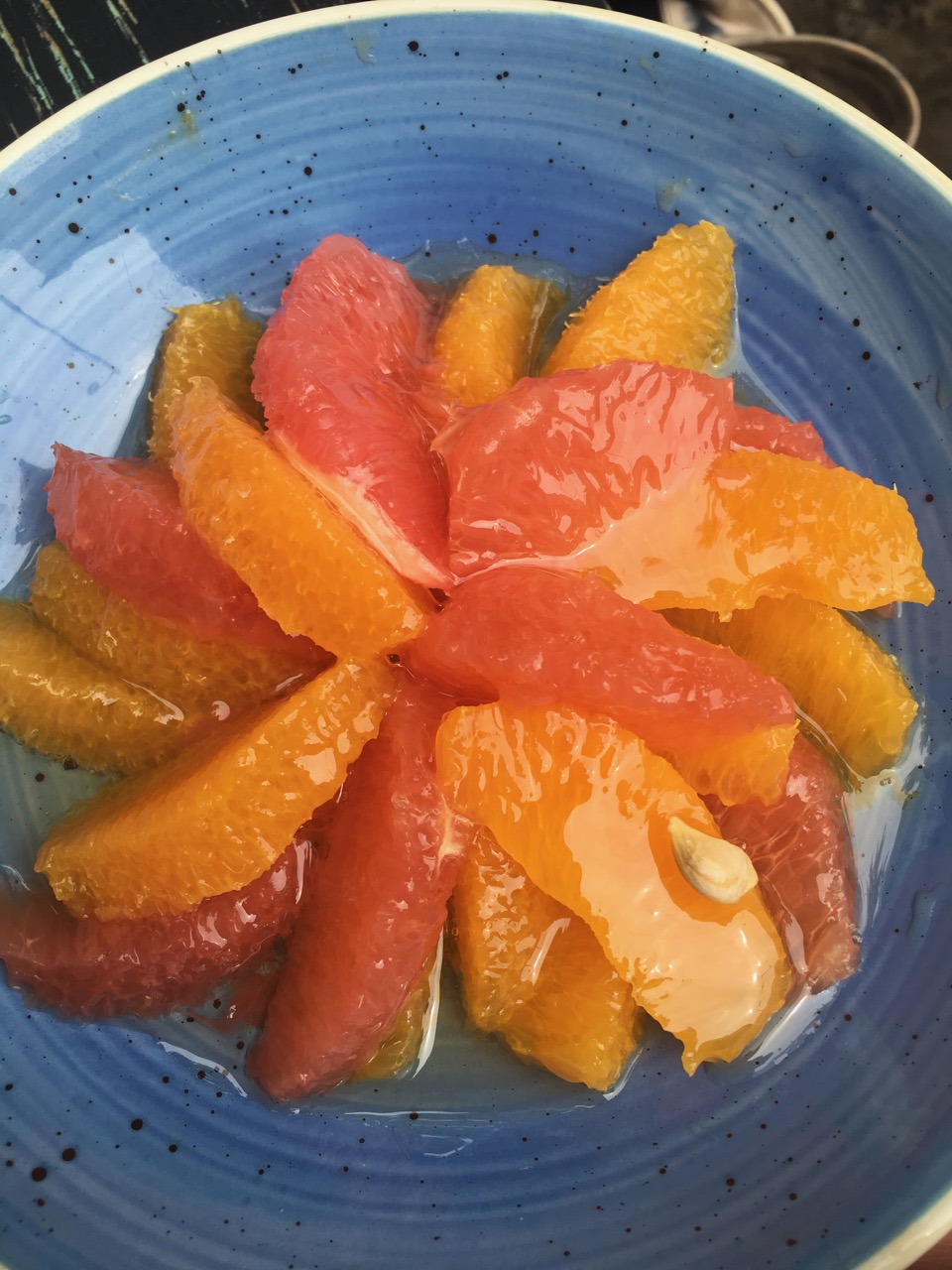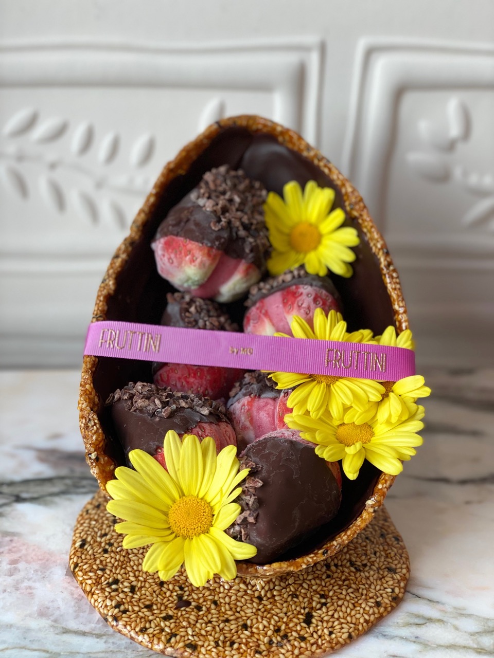 A l’intérieur de chaque fruit givré, un sorbet fait à base de la pulpe du fruit, et à la texture étonnamment crémeuse. De la figue à la date en passant par la cabosse de cacao, la variété de la proposition répond à toutes les envies.