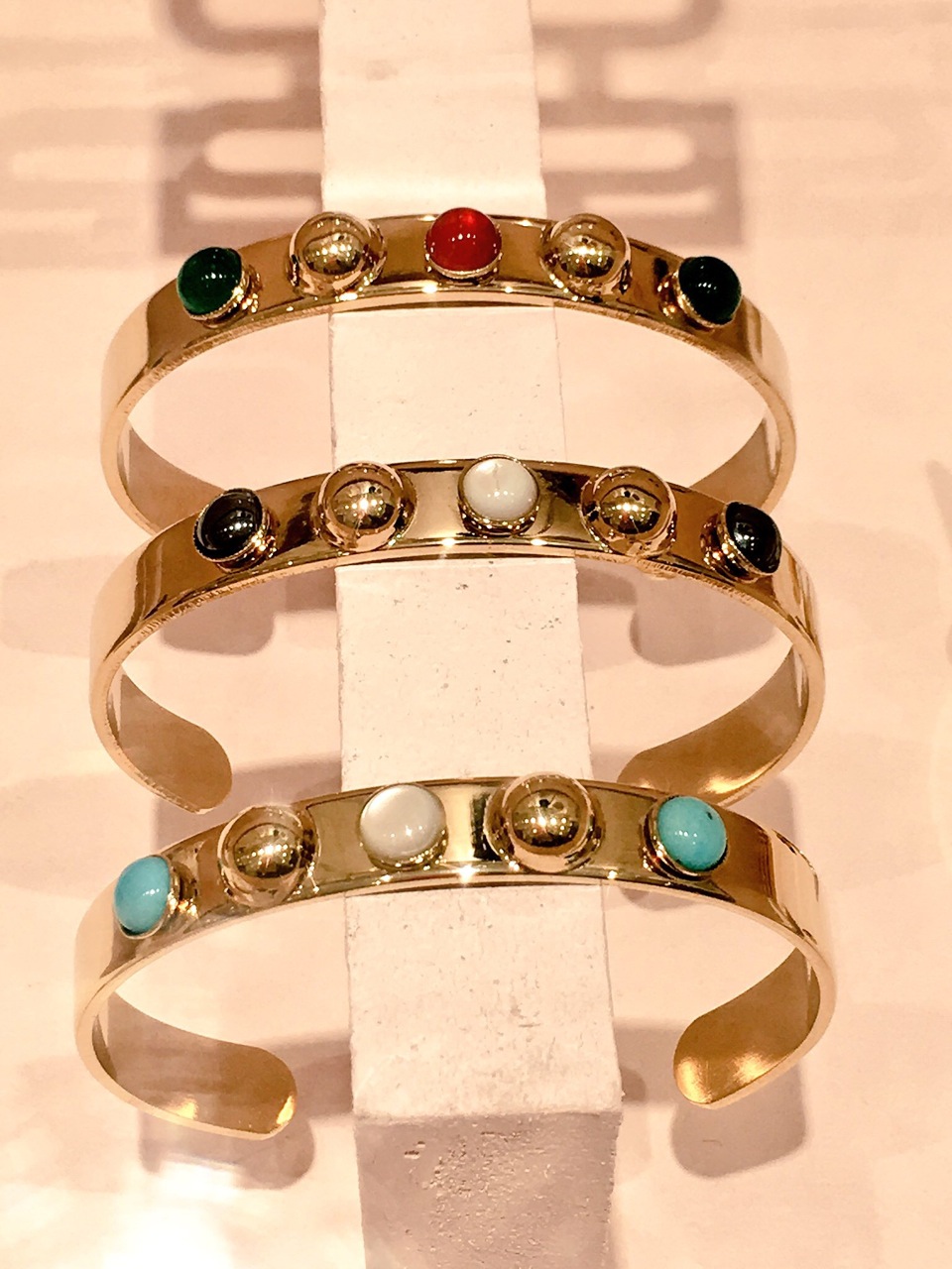 Ici, une dimension ethnique, pour des manchettes et des joncs que l’on peut cumuler au poignet. Je le sais, je l’ai constaté moi même en boutique !