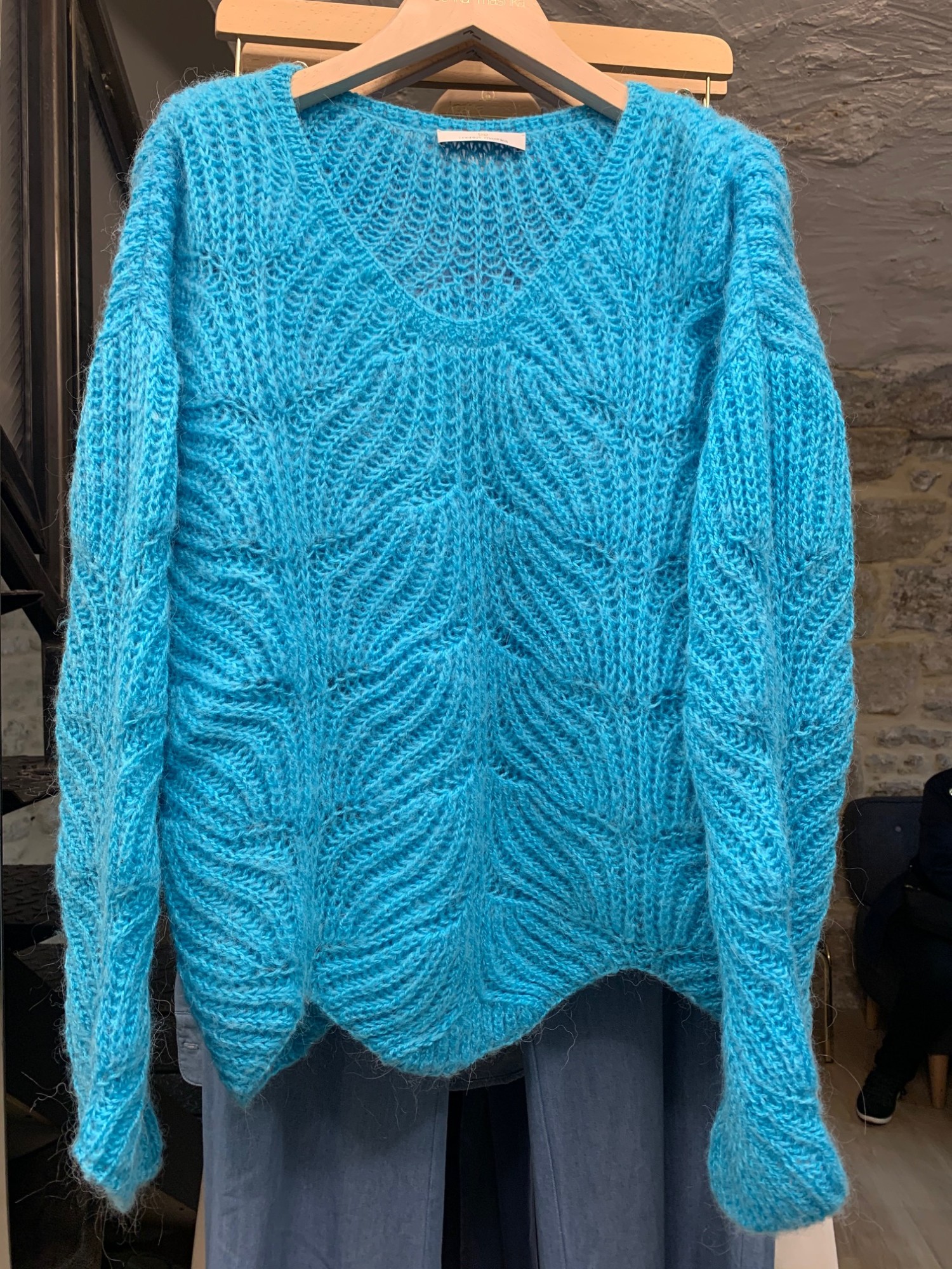 Coup de cœur double pour le pull à torsade centrale. Sans oublier la superbe veste bleu, blanc, rouge proposée dans la sélection homme mais qui est si parfaite pour la femme en mode oversize !